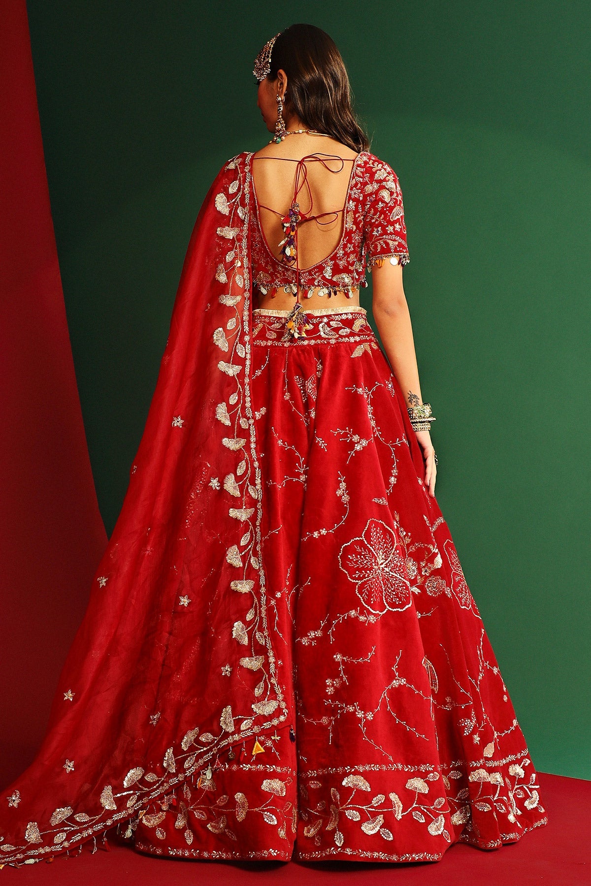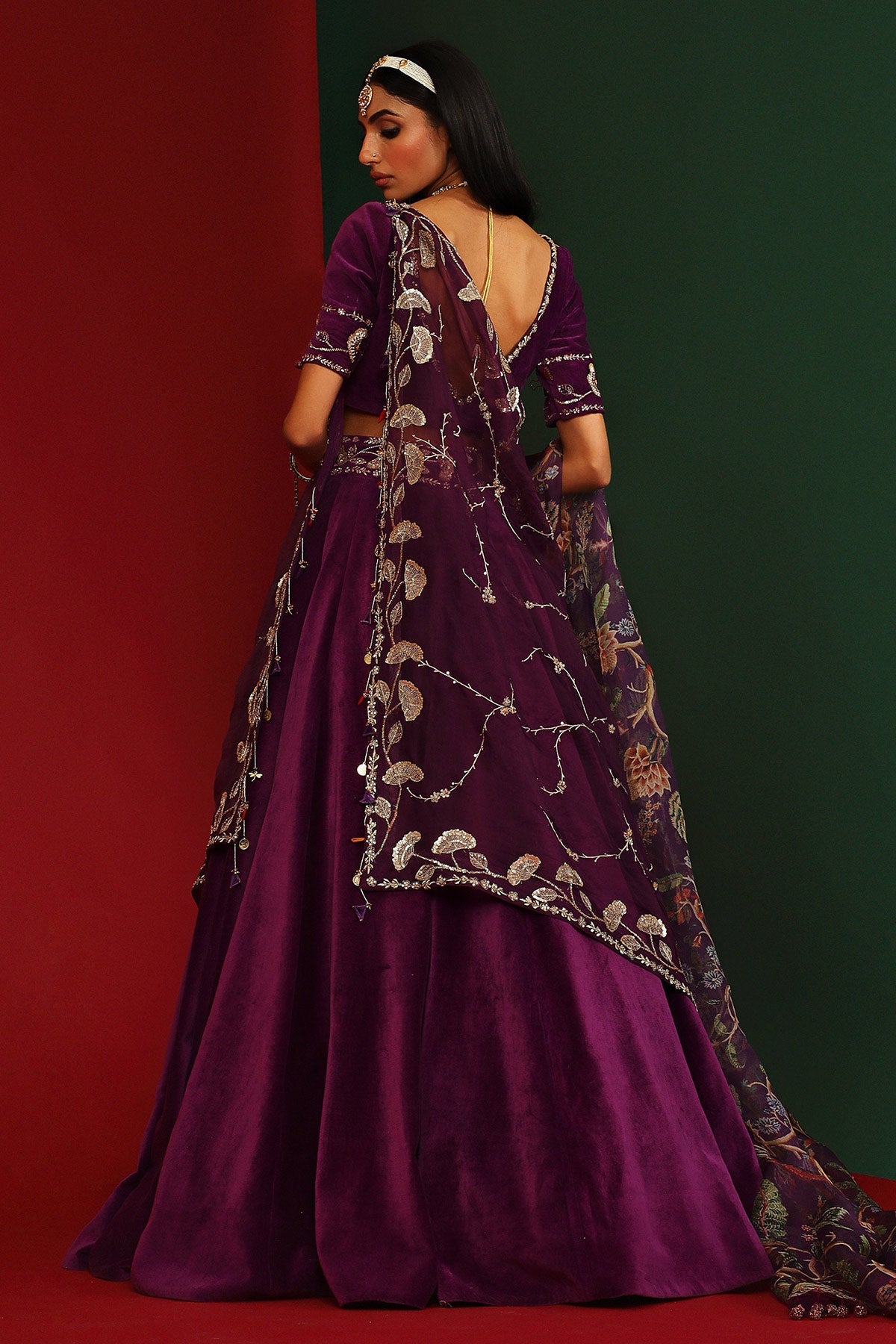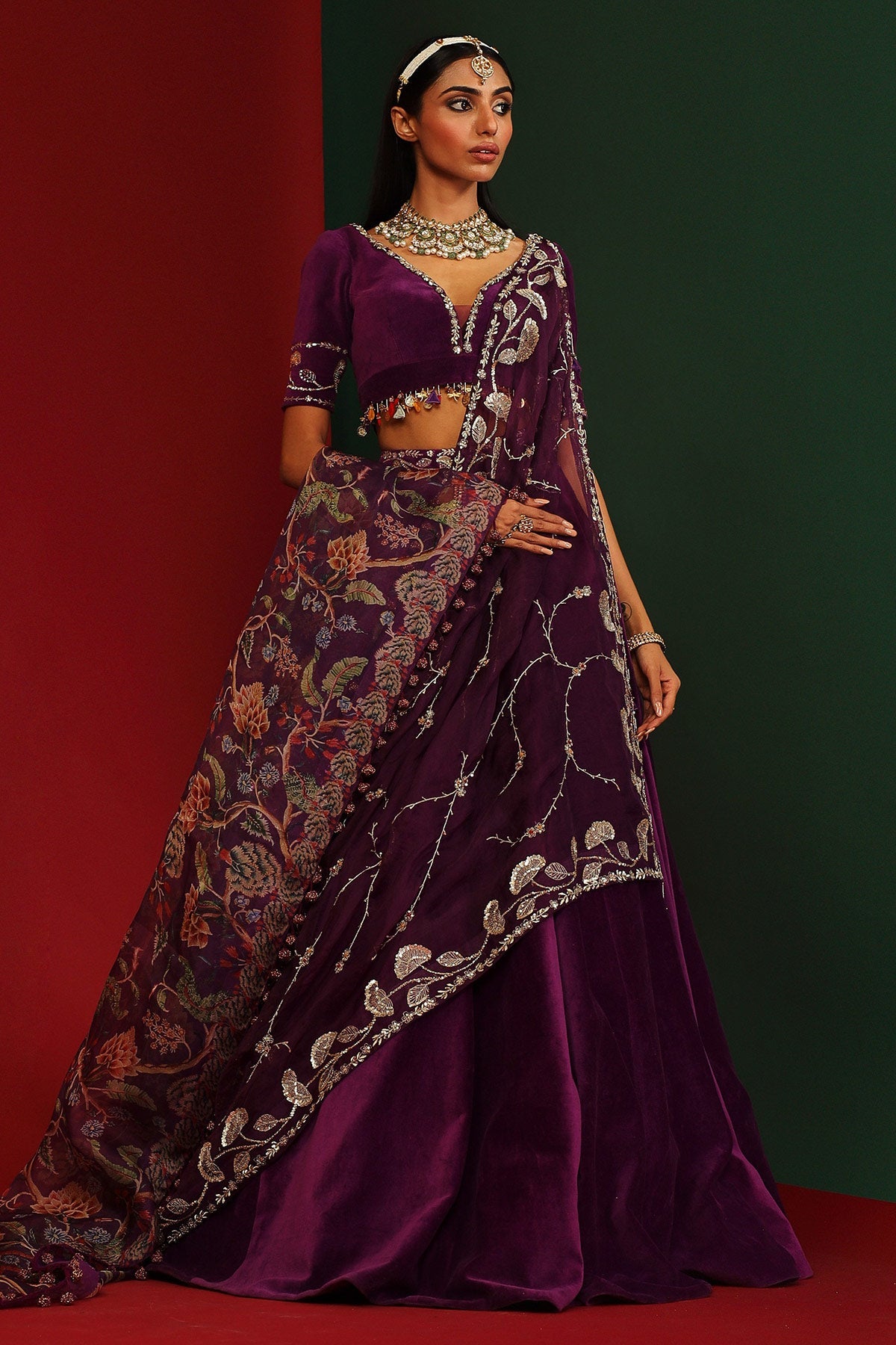 Razer Back Blouse with Velvet Tulip Lehenga Set