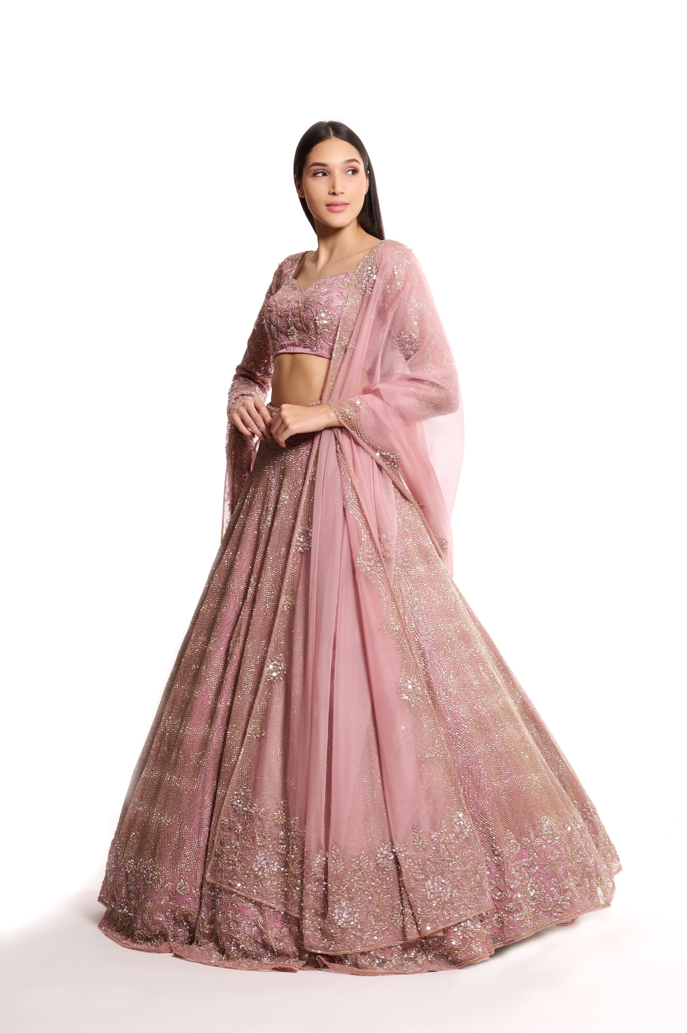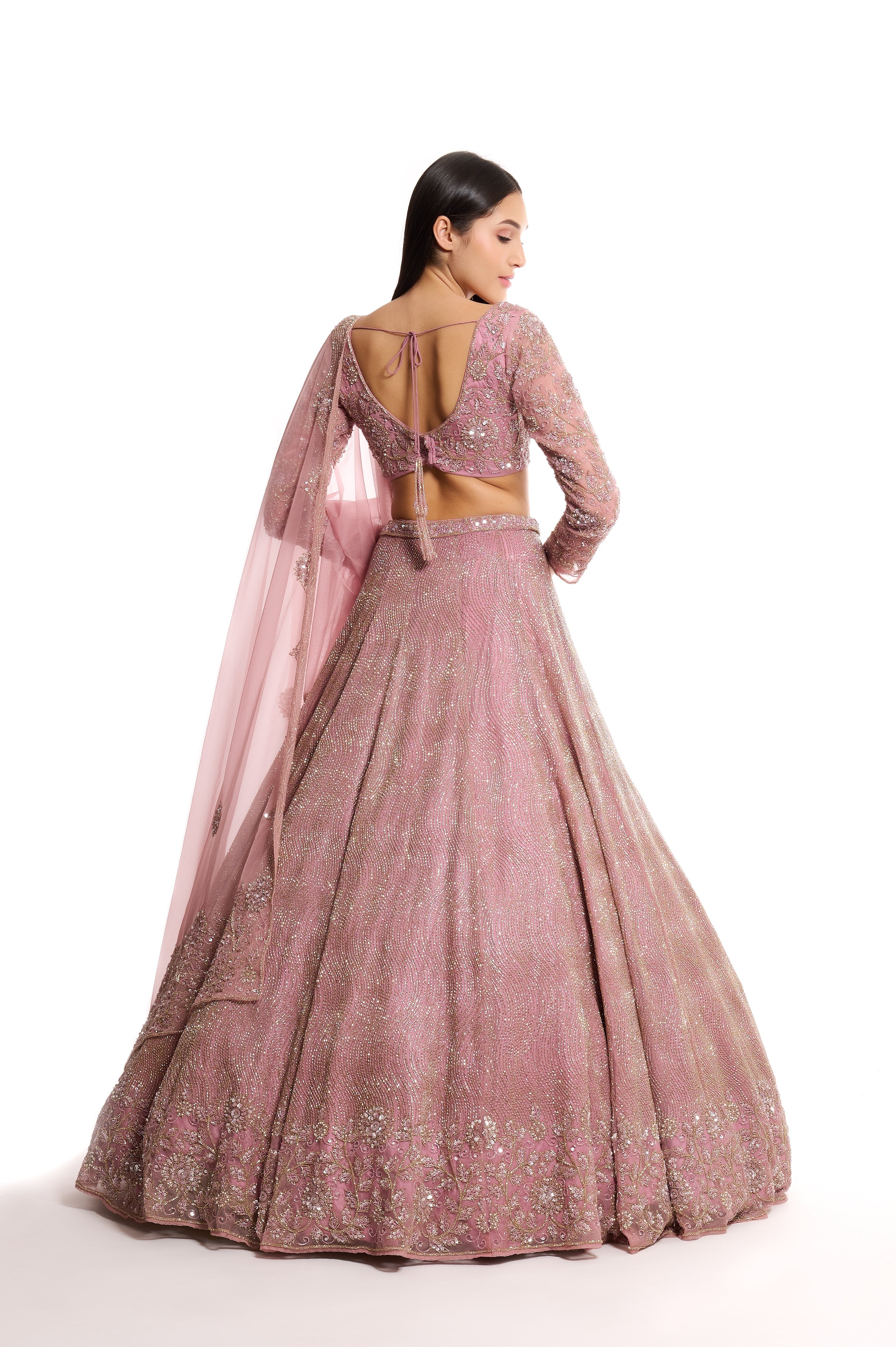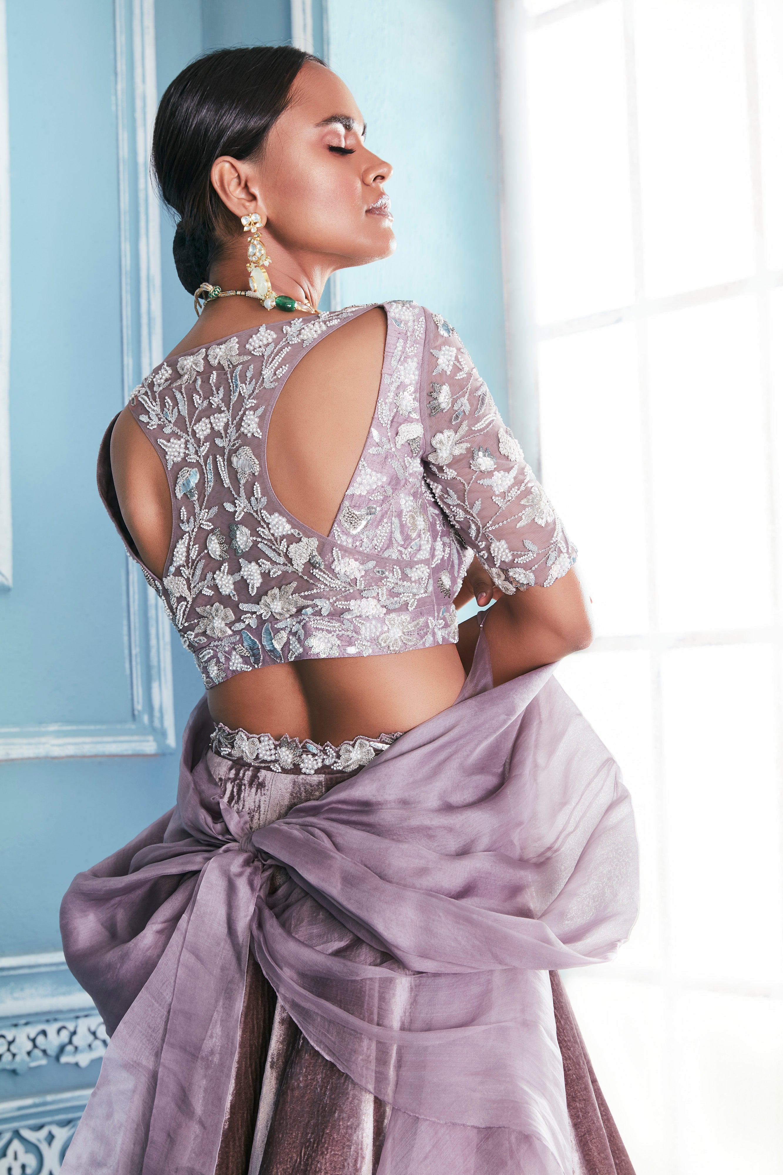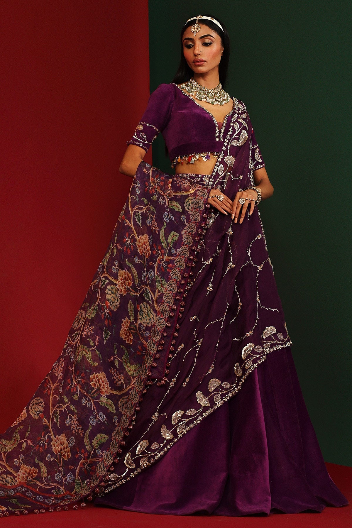 Razer Back Blouse with Velvet Tulip Lehenga Set