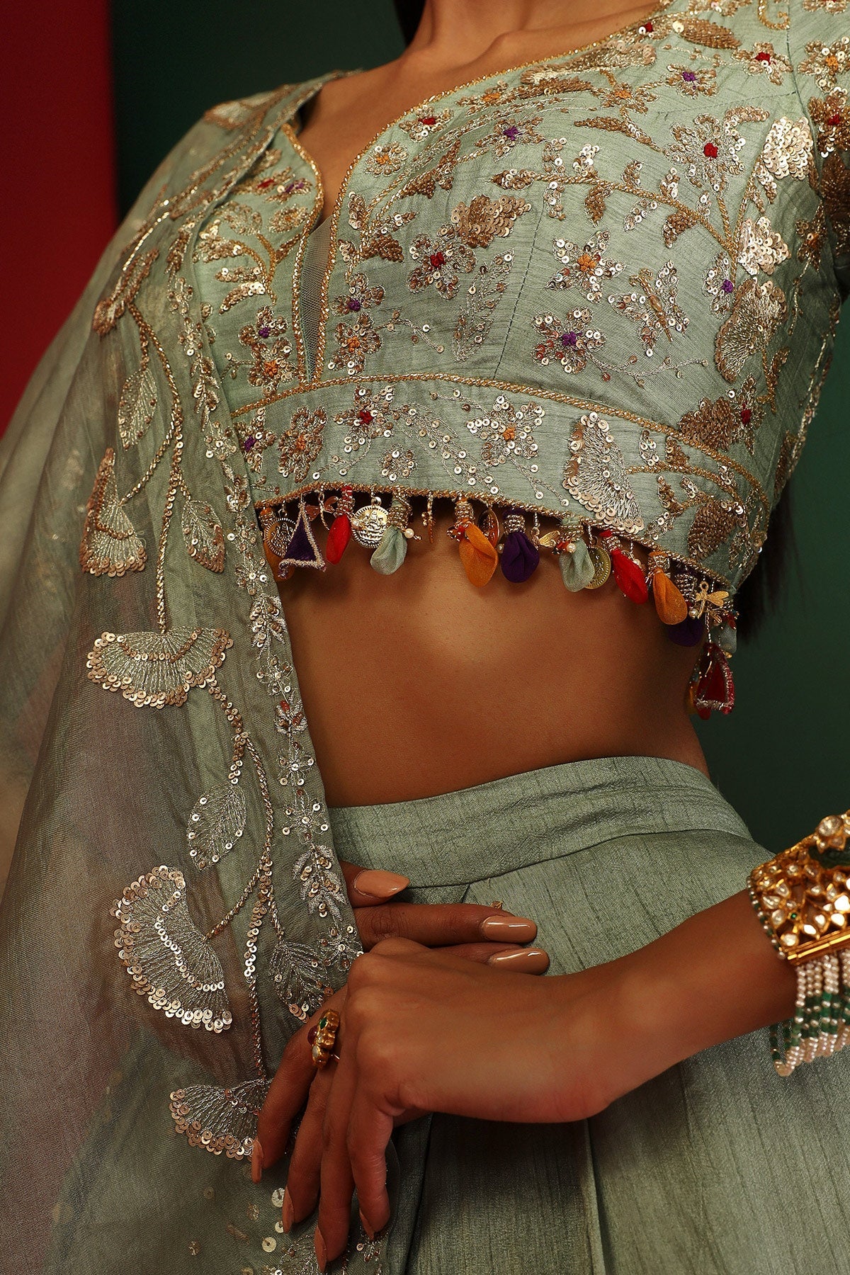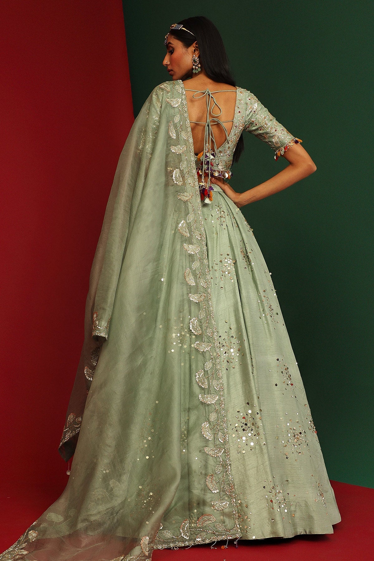 Olive Green Zeba Embroidered Lehenga Set By Mahima Mahajan