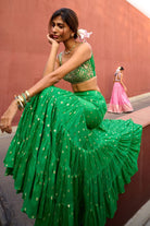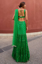 PRODUCT DETAILS: Blouse length-13 F neck -9.5 B neck -12 Chest - 36(M) Lehenga length- 43 Lehenga waist -31DELIVERY TIME: 4-5 WEEKS