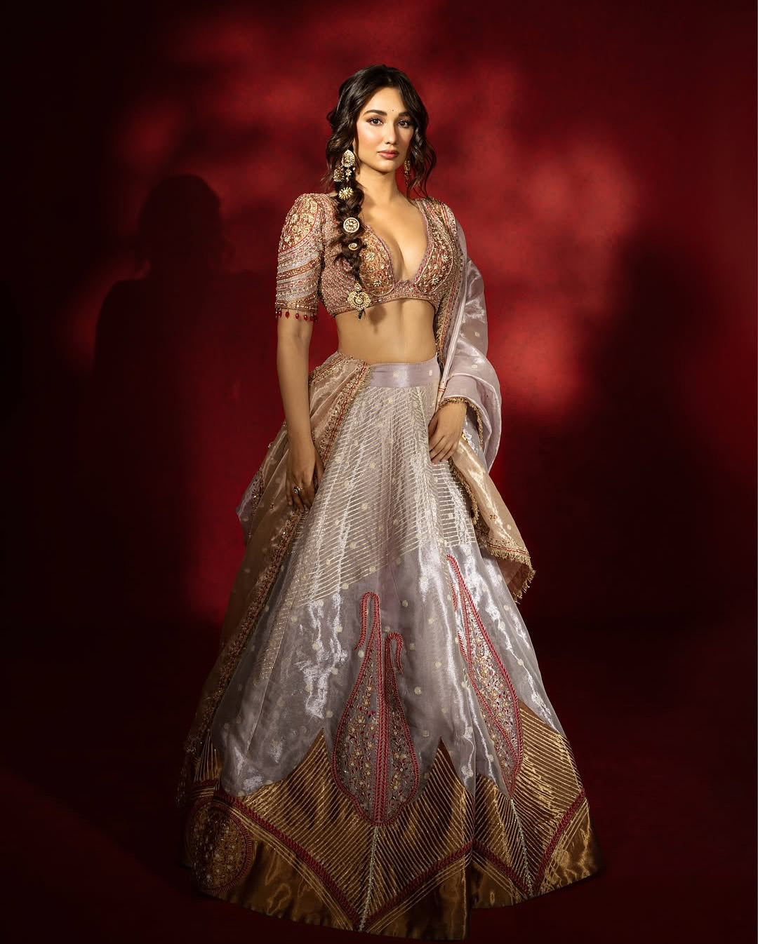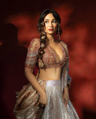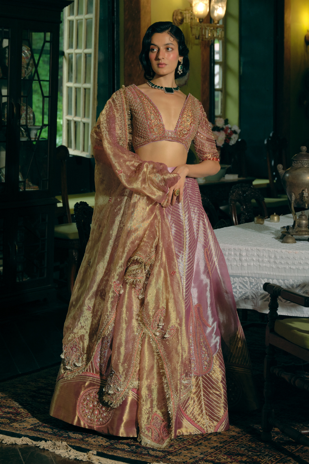 Akanksha Sharma Purple silk zari tissue lehenga set
