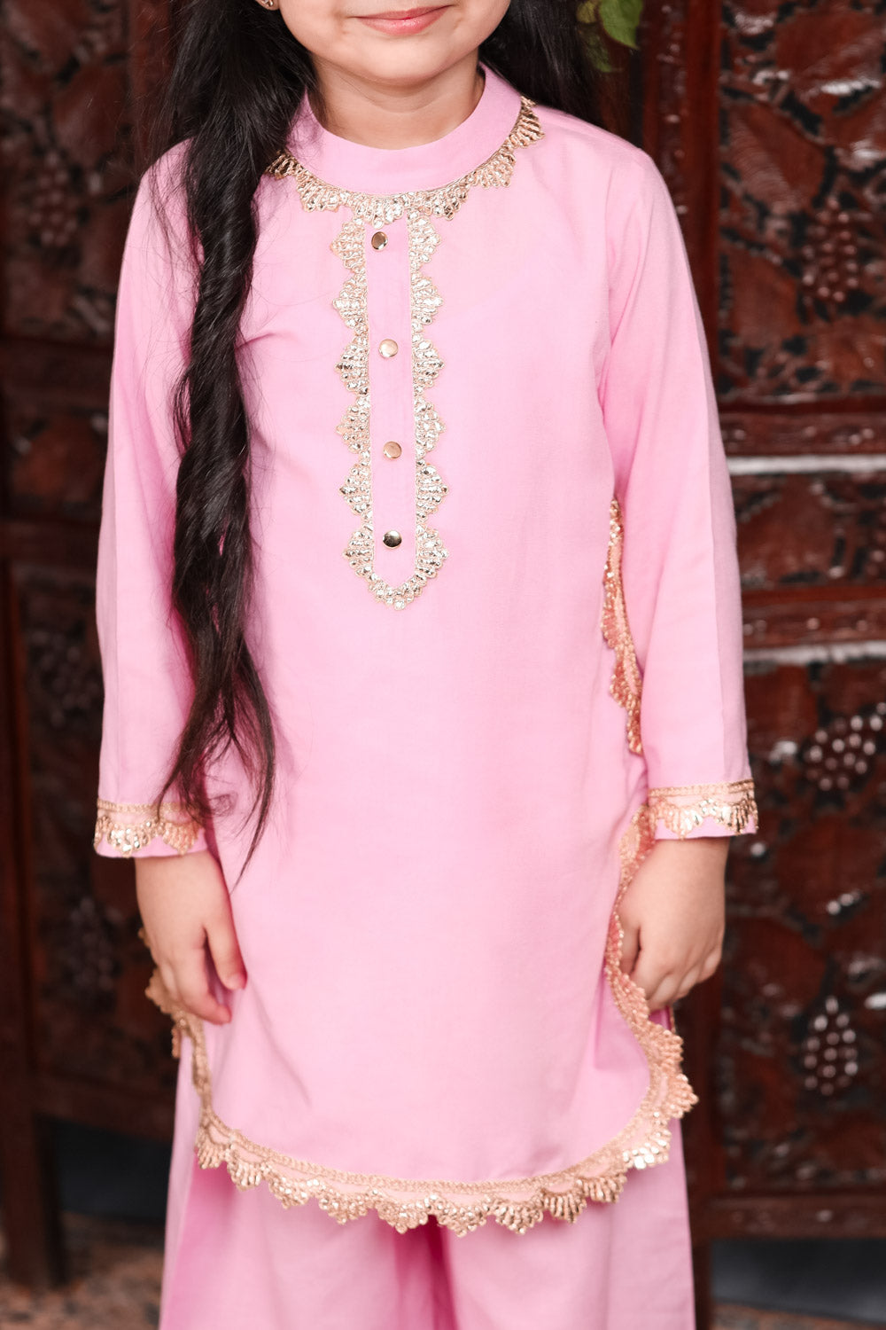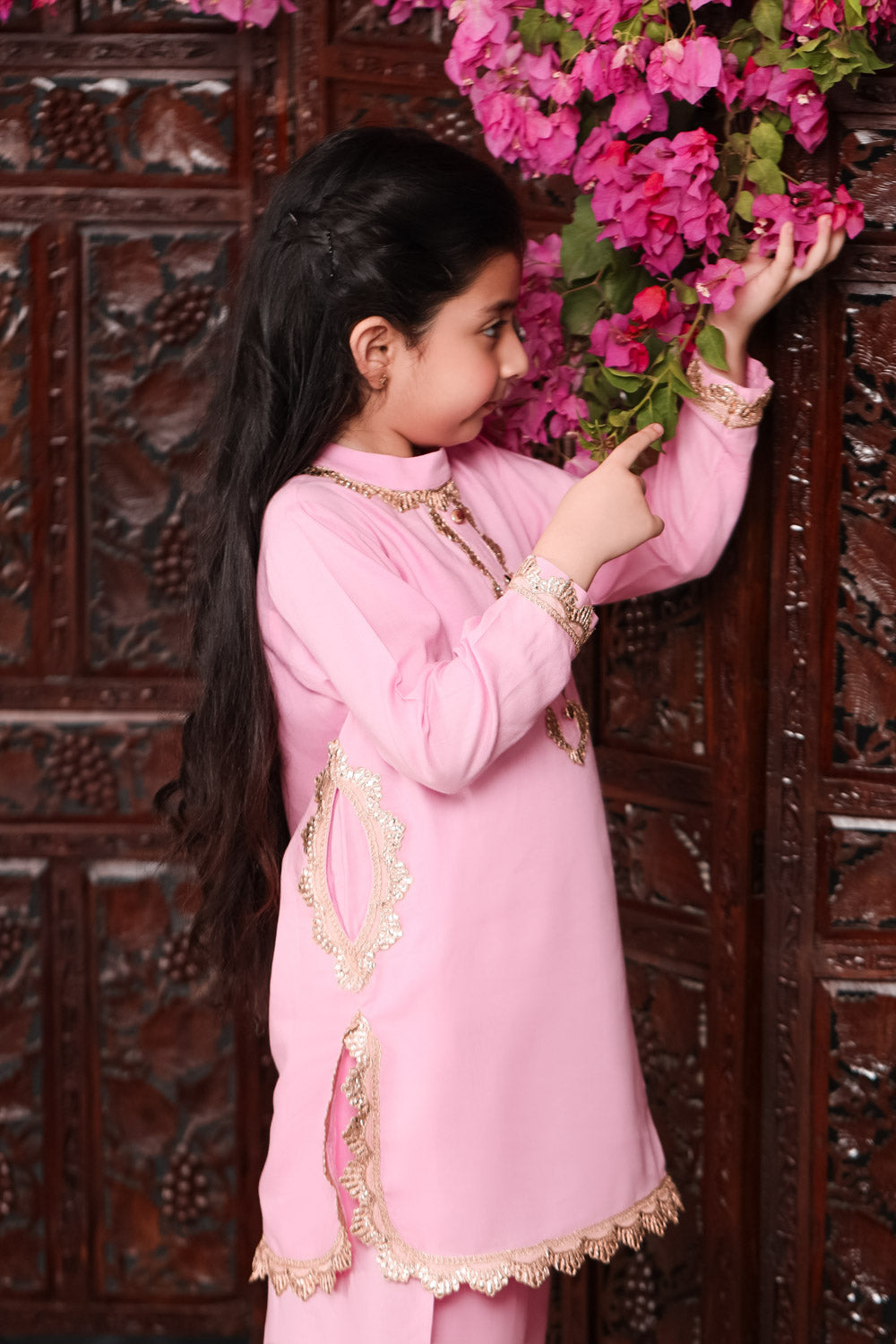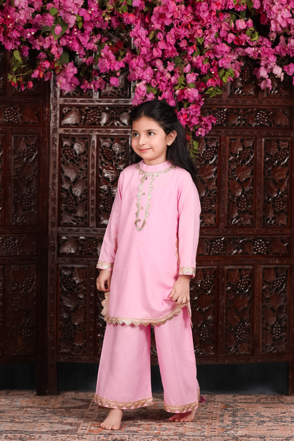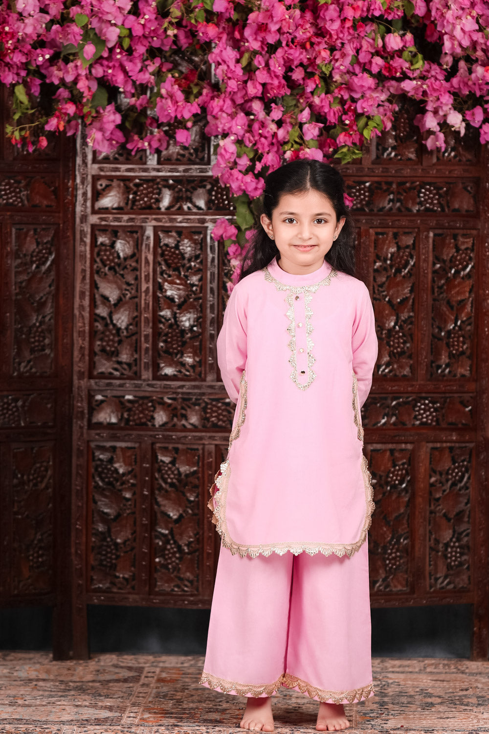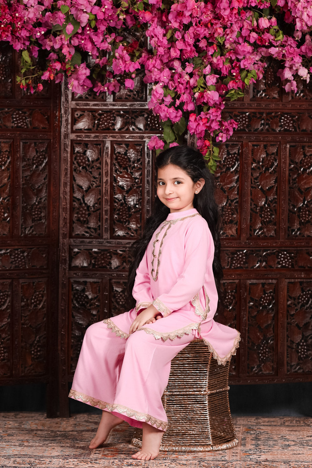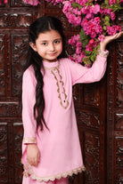 Akira from Noora 3.0 is a beautifully inspired kashmiri kurta set made in soft cotton fabric ,embellished with an elegant scallop lace and golden buttons. Beautifully designed pocket features that totally gives your little princess a big smile that shines up her day!