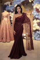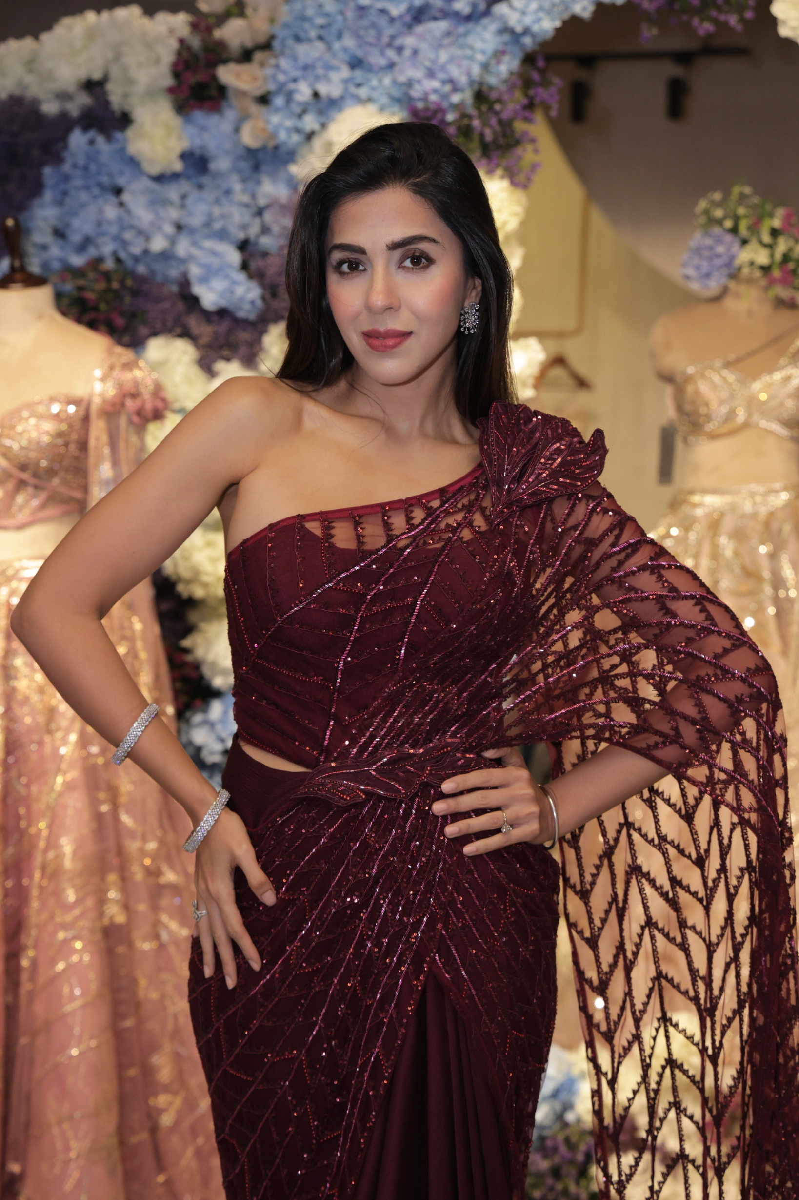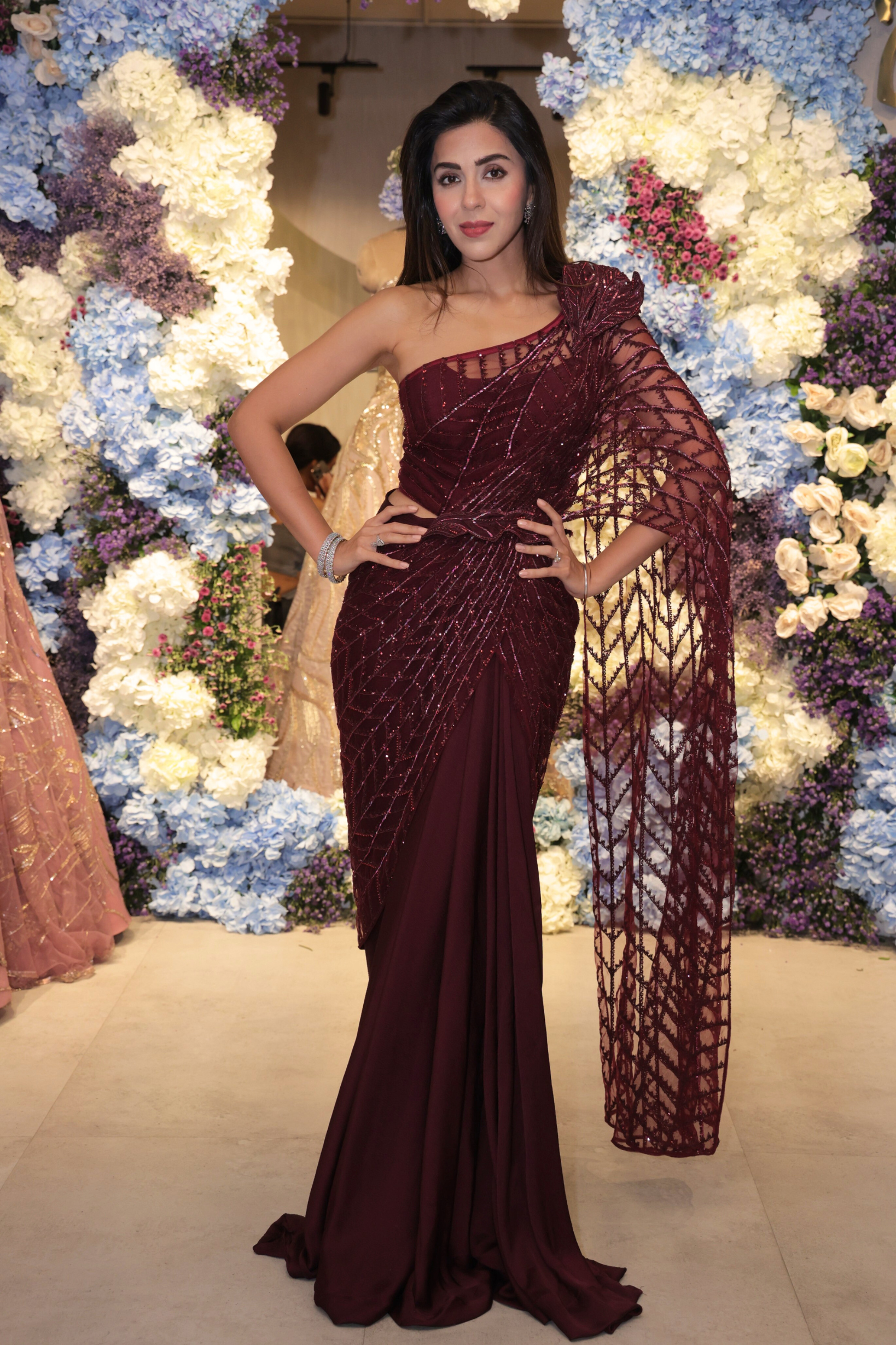 Bahaar Dhawan in Wine Crystal Drape Saree
