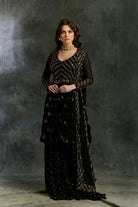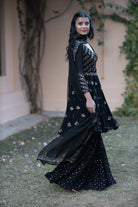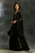 Featuring a BLACK AND GOLD GEORGETTE JACKET SHARARA