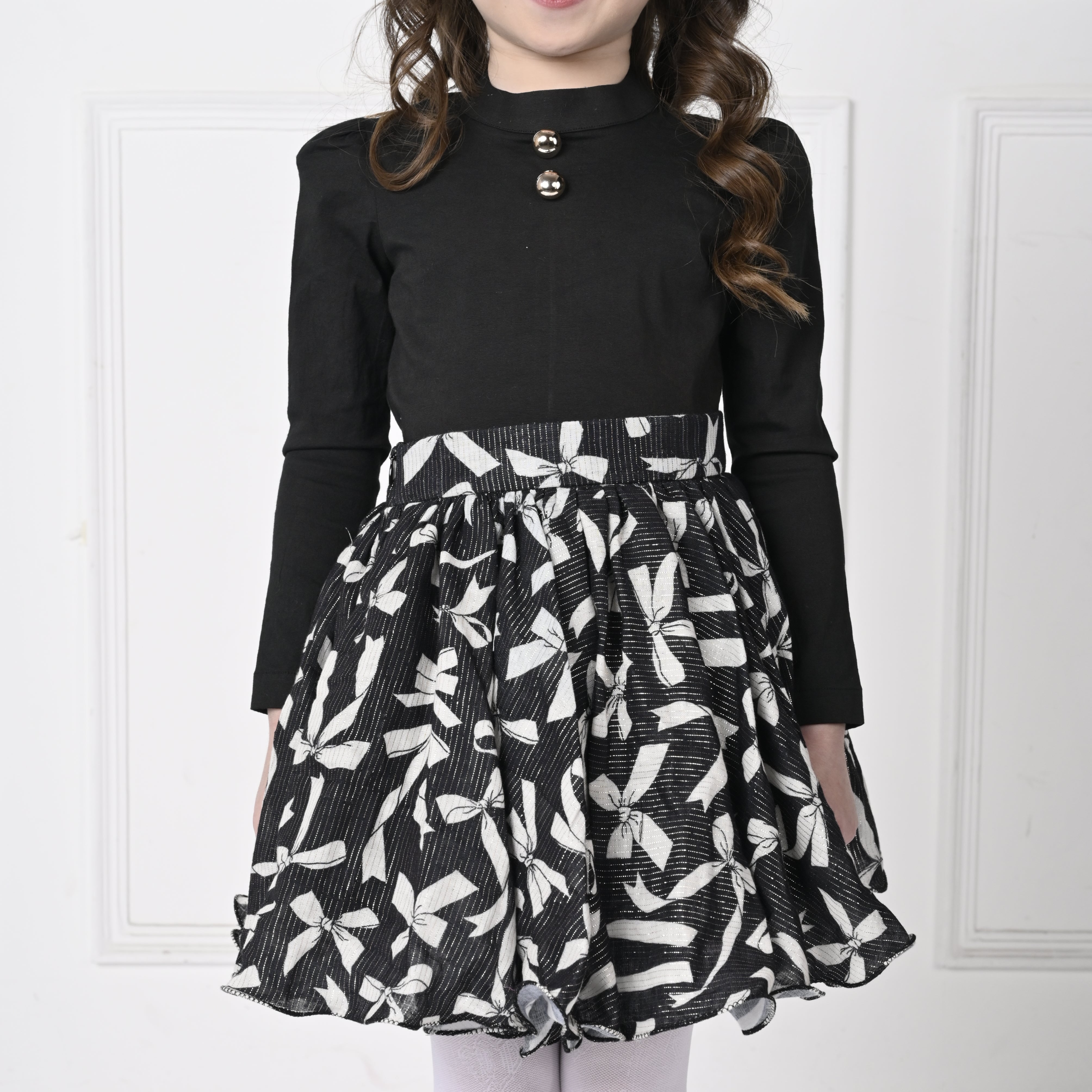 Elevate your style with our Black Bow Skirts Set Co Ords. These sleek and sophisticated pieces are designed with a flattering bow detail, adding a touch of elegance to your wardrobe. Made with quality materials, this set offers comfort and durability. Perfect for any occasion, elevate your look with our Black Bow Skirts Set Co Ord