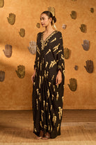 Details: Kaftan- Beautiful all over foil printed kaftan | Sleeves and neckline embellished with foil printed borders with highlights | V-neckline