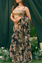 Black Chiffon Floral Frill Saree Set
