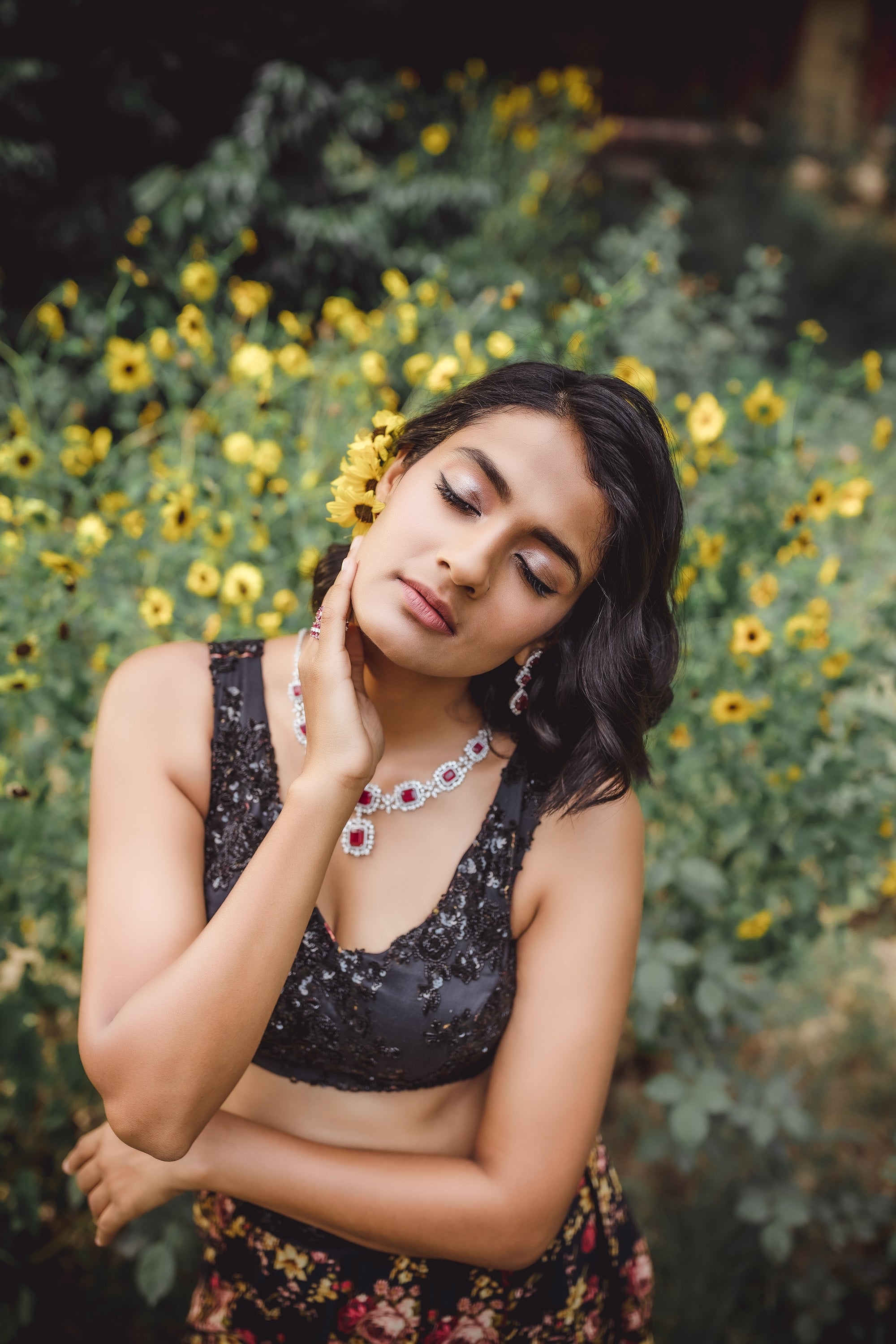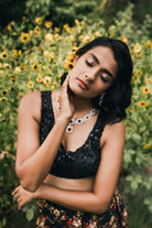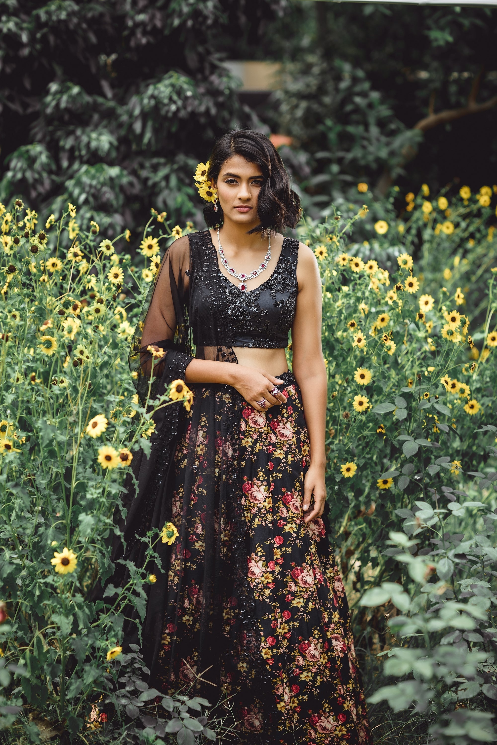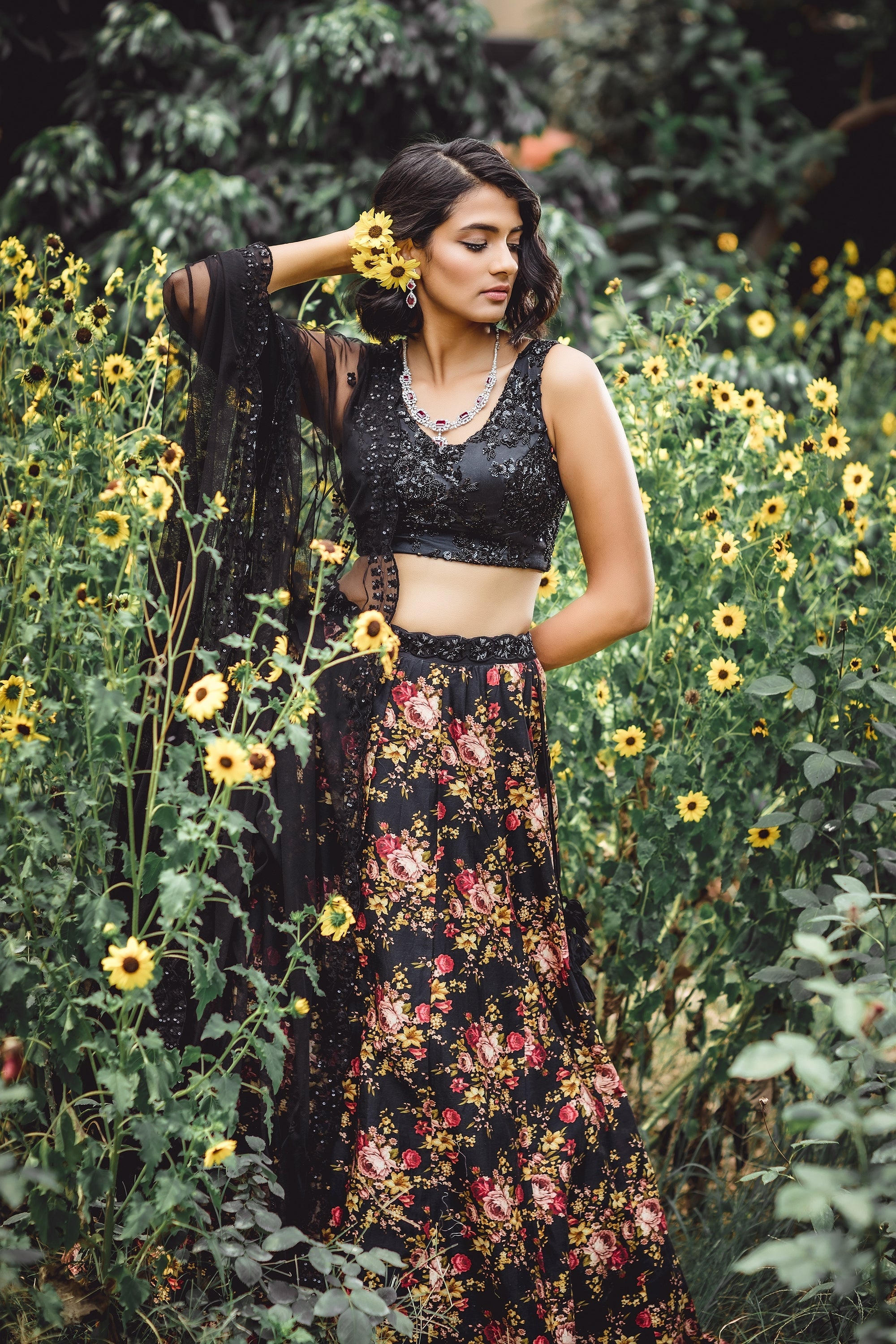 Featuring a BLACK FLORAL LEHENGA SET IN CHANDERI.
