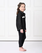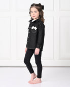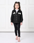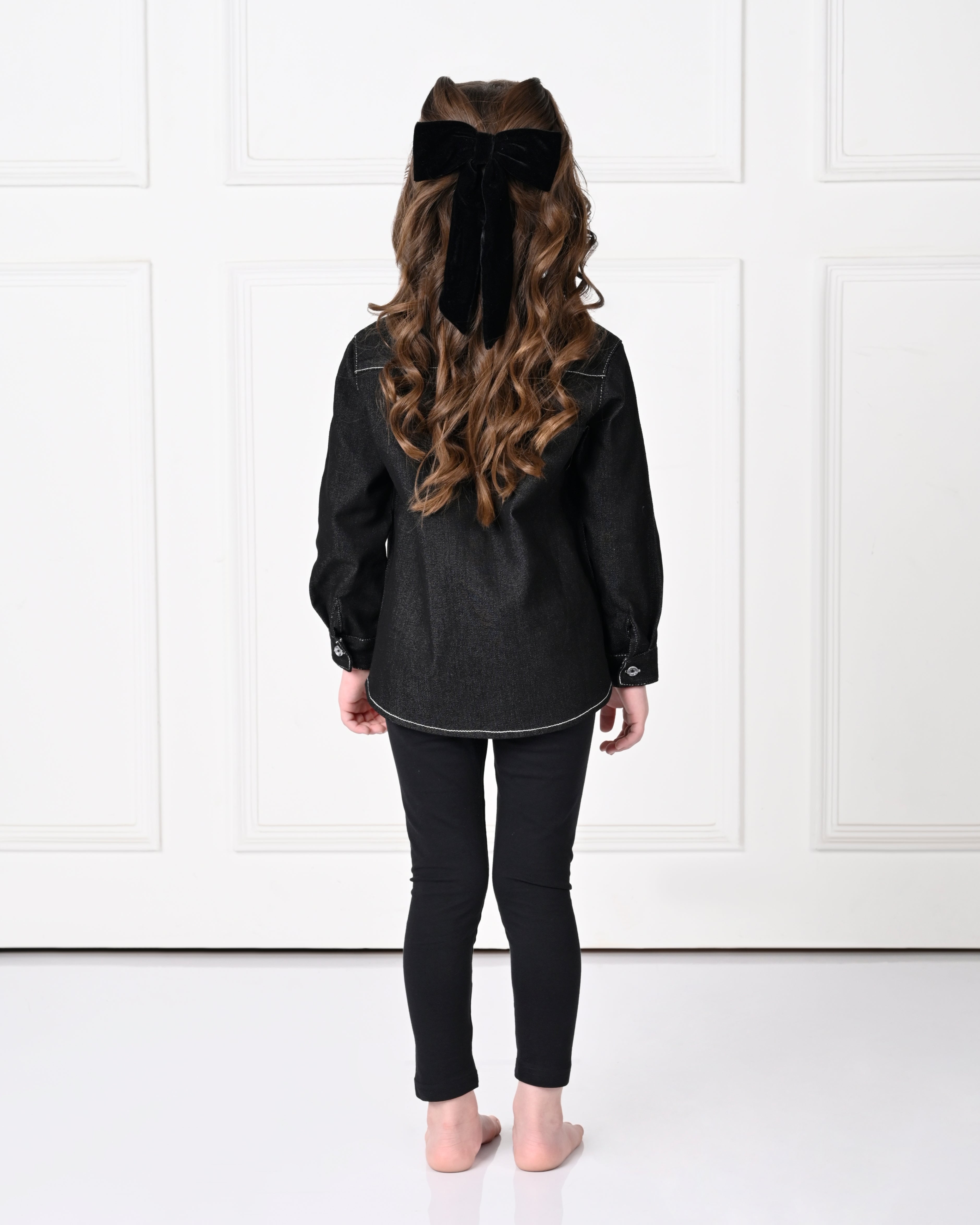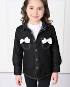 Expertly crafted with full sleeves and a bow detail, our Black Denim Jacket adds a touch of sophistication to your wardrobe. Made with high-quality denim, this jacket is durable and stylish. Perfect for adding a layer of chic to any outfit.