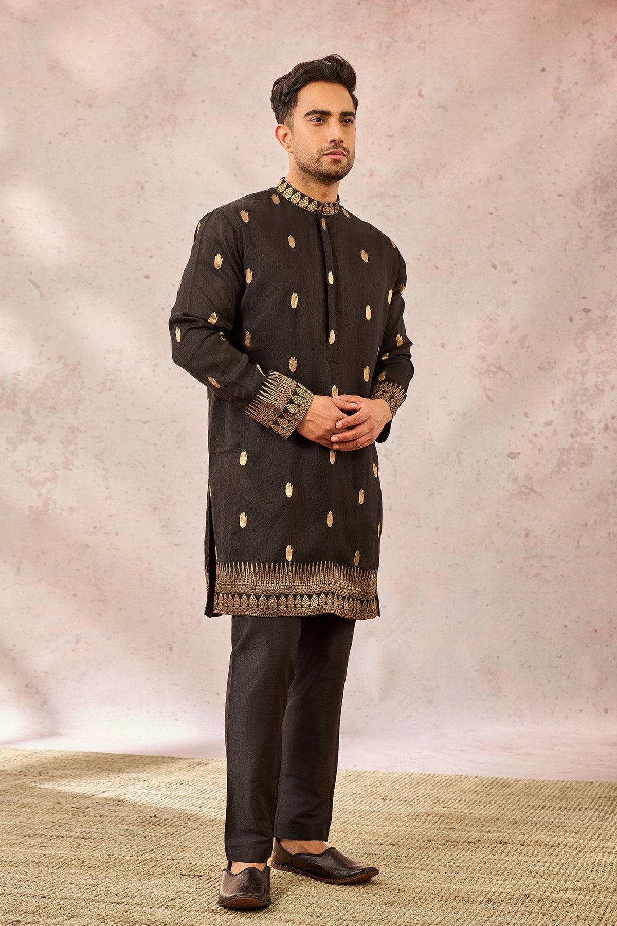 Black Haath Phool Kurta