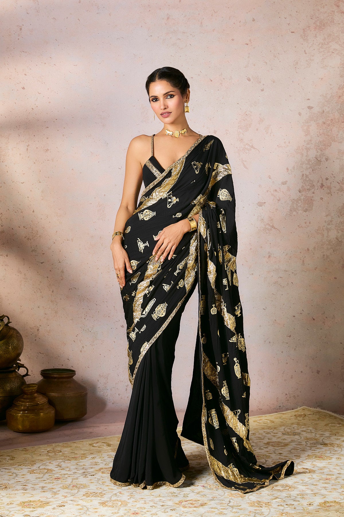 Black Potters Touch Gota Saree