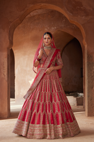 BLOOD RED ZARDOZI WORK RAW SILK LEHENGA CHOLI