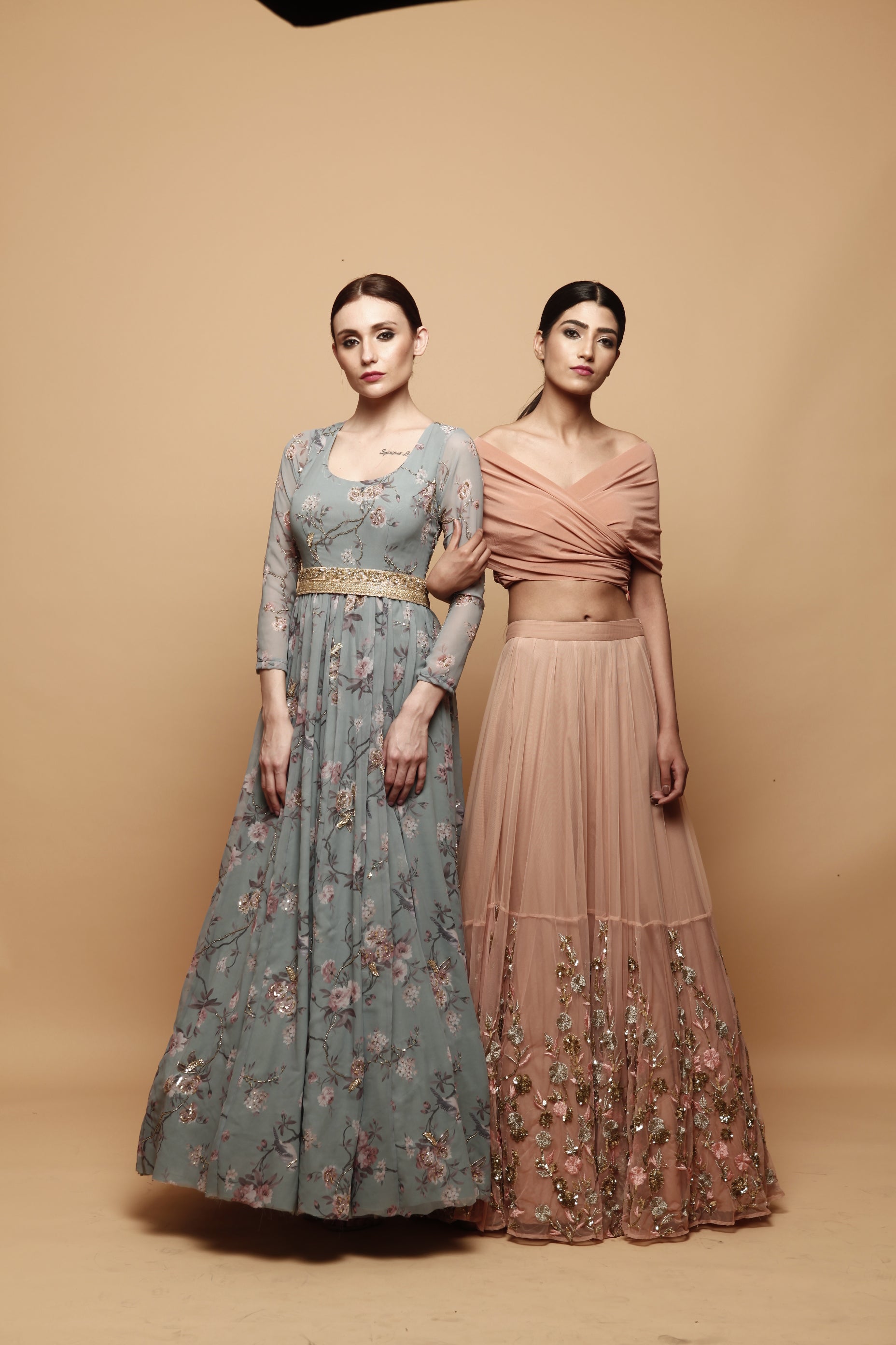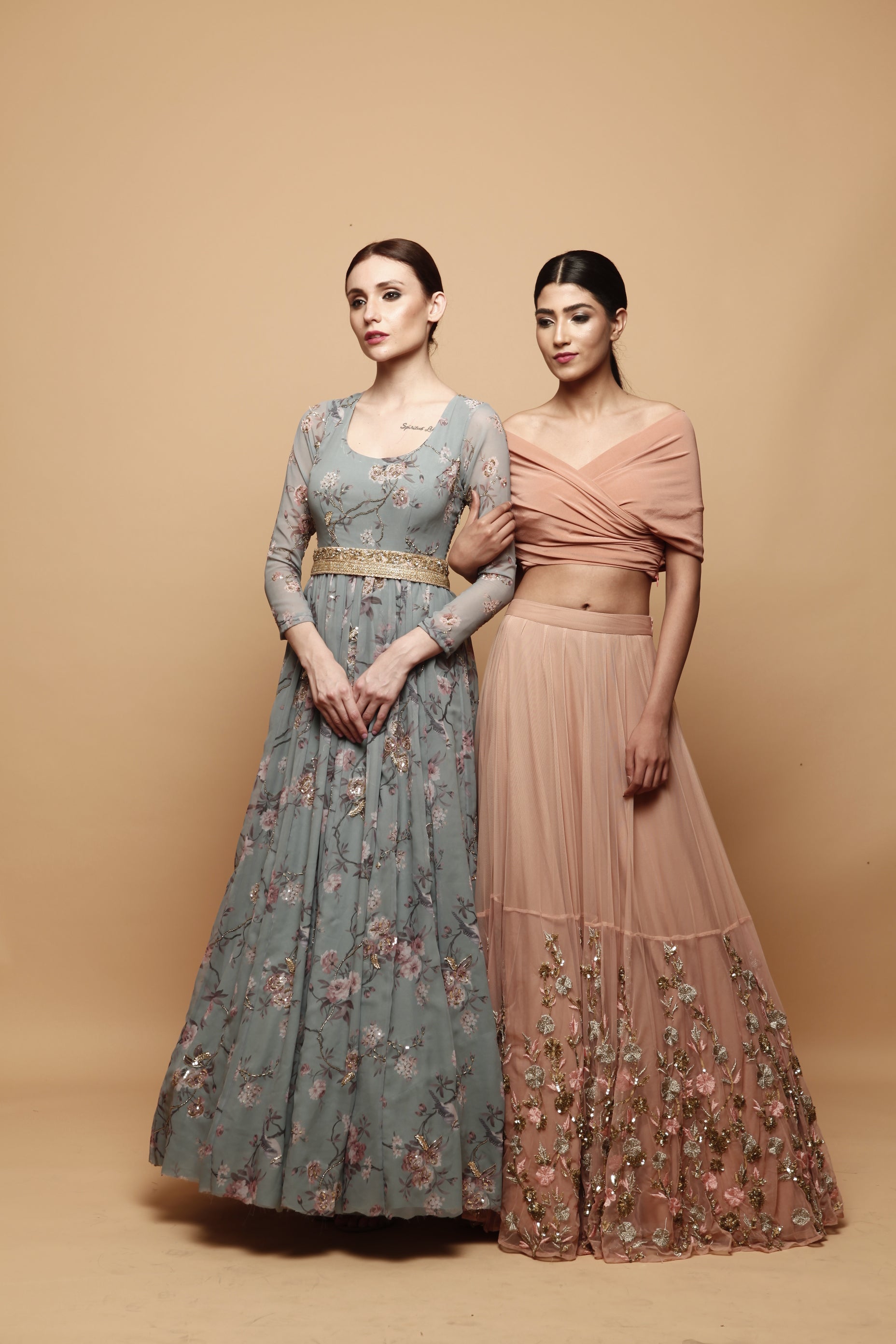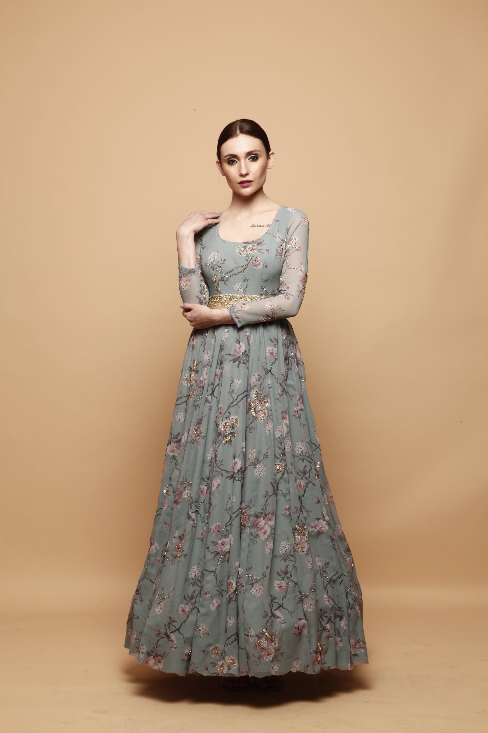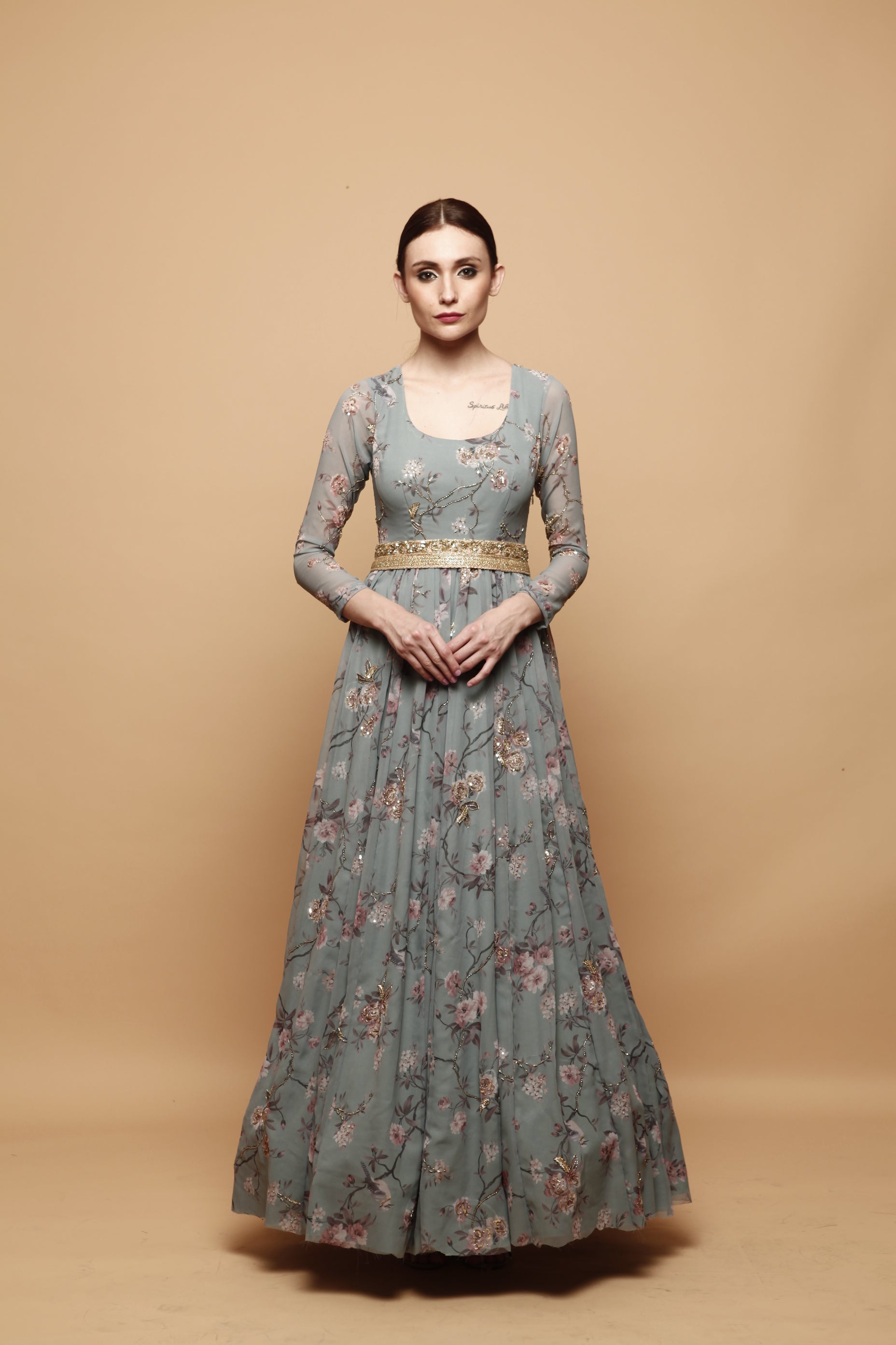 Featuring a BLUE FLORAL PRINT ANARKALI GOWN IN GEORJETTE.