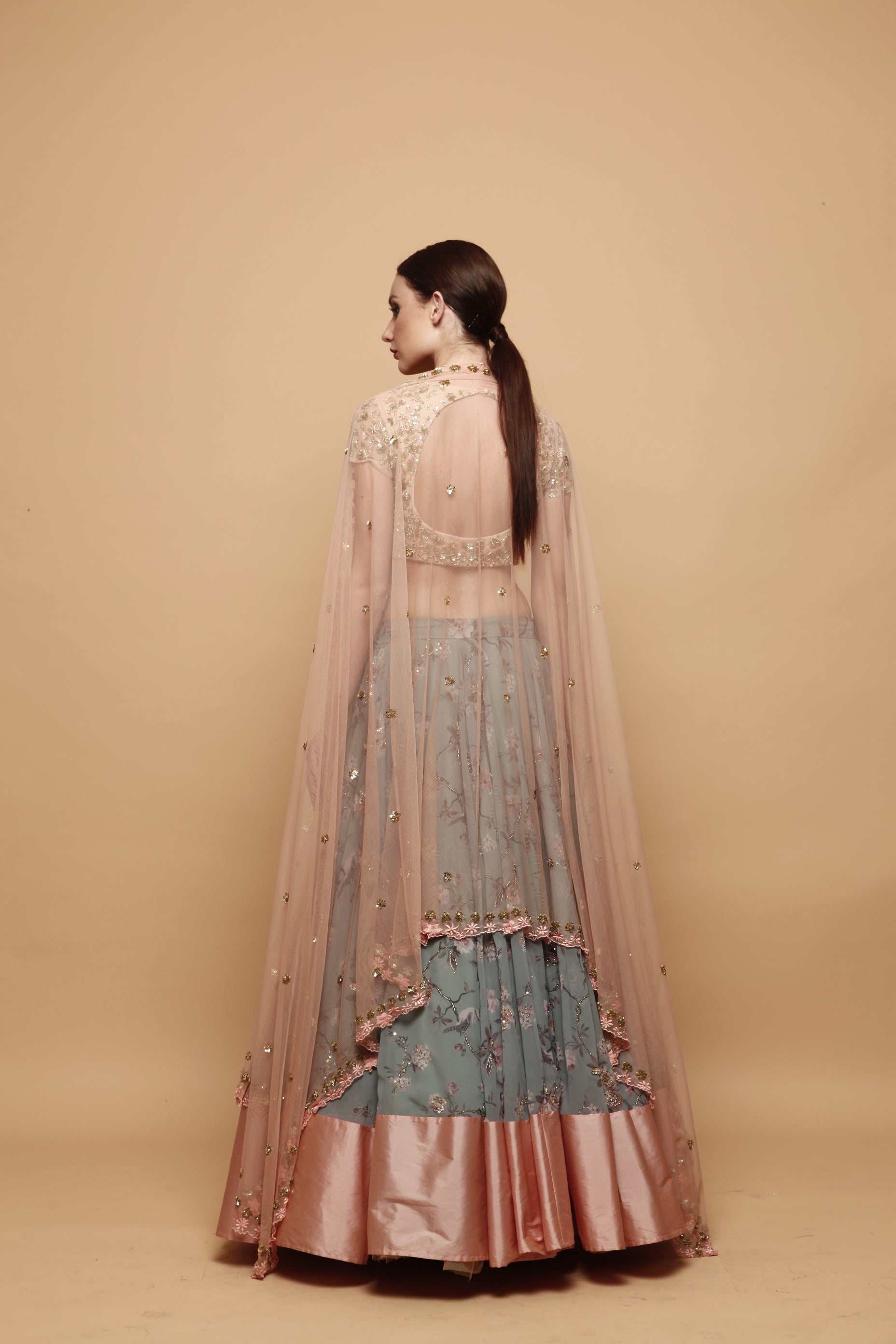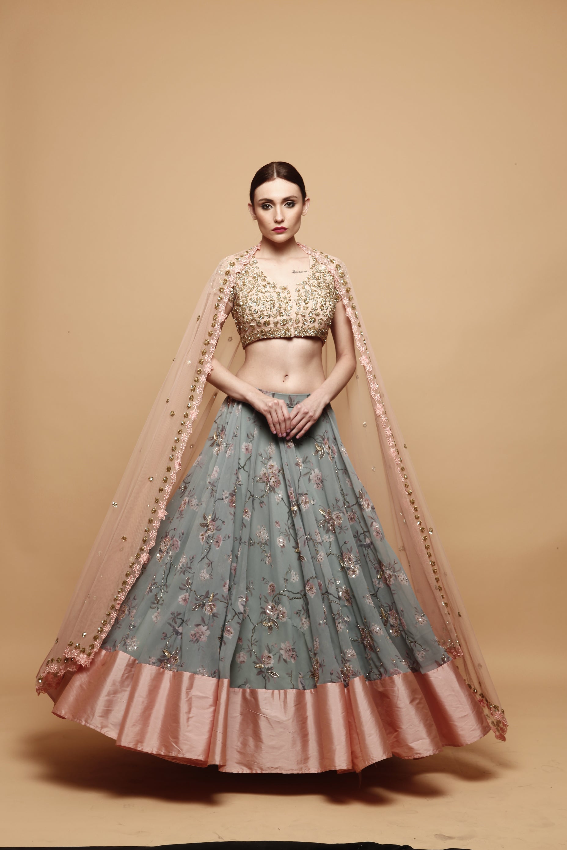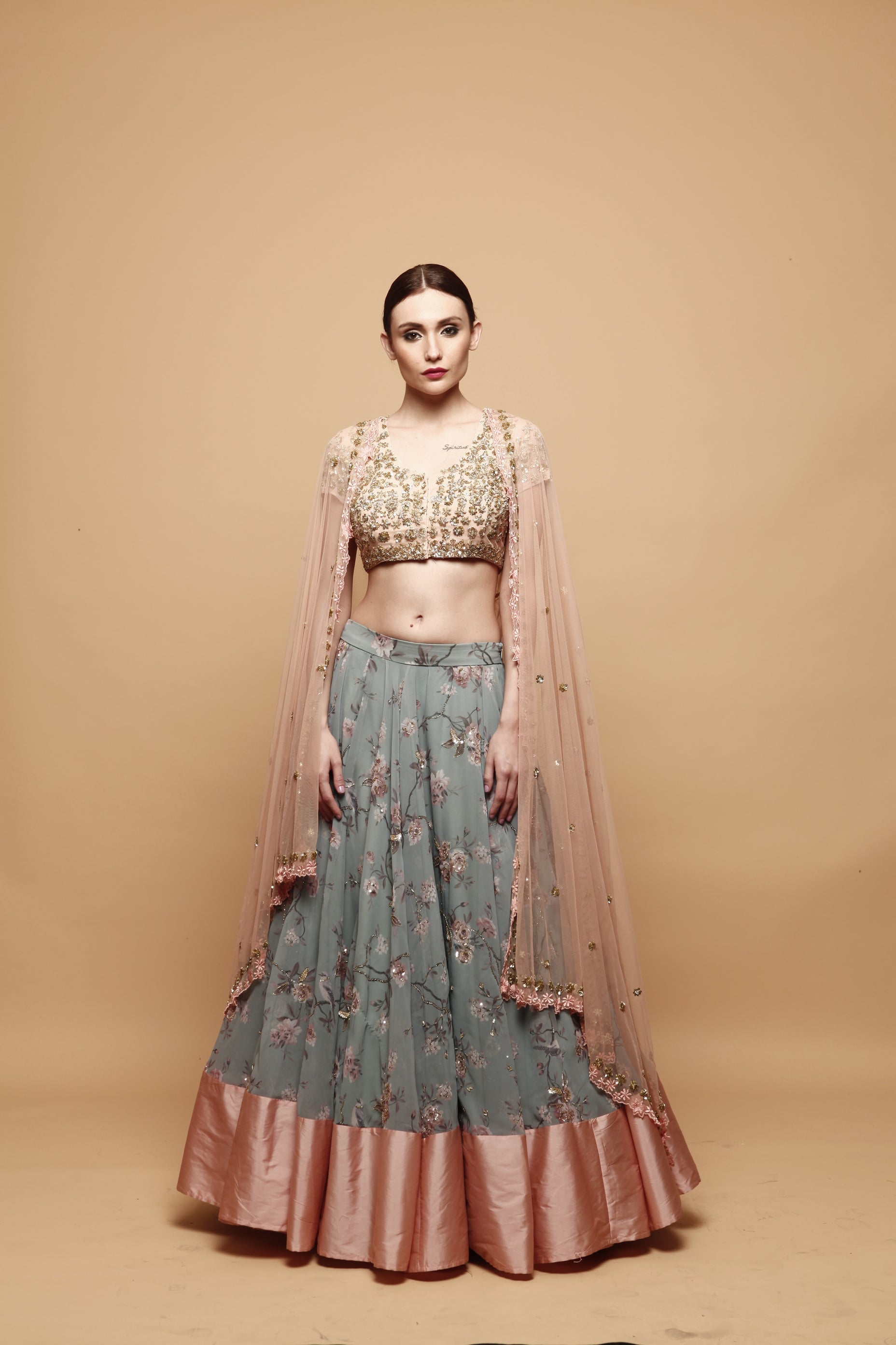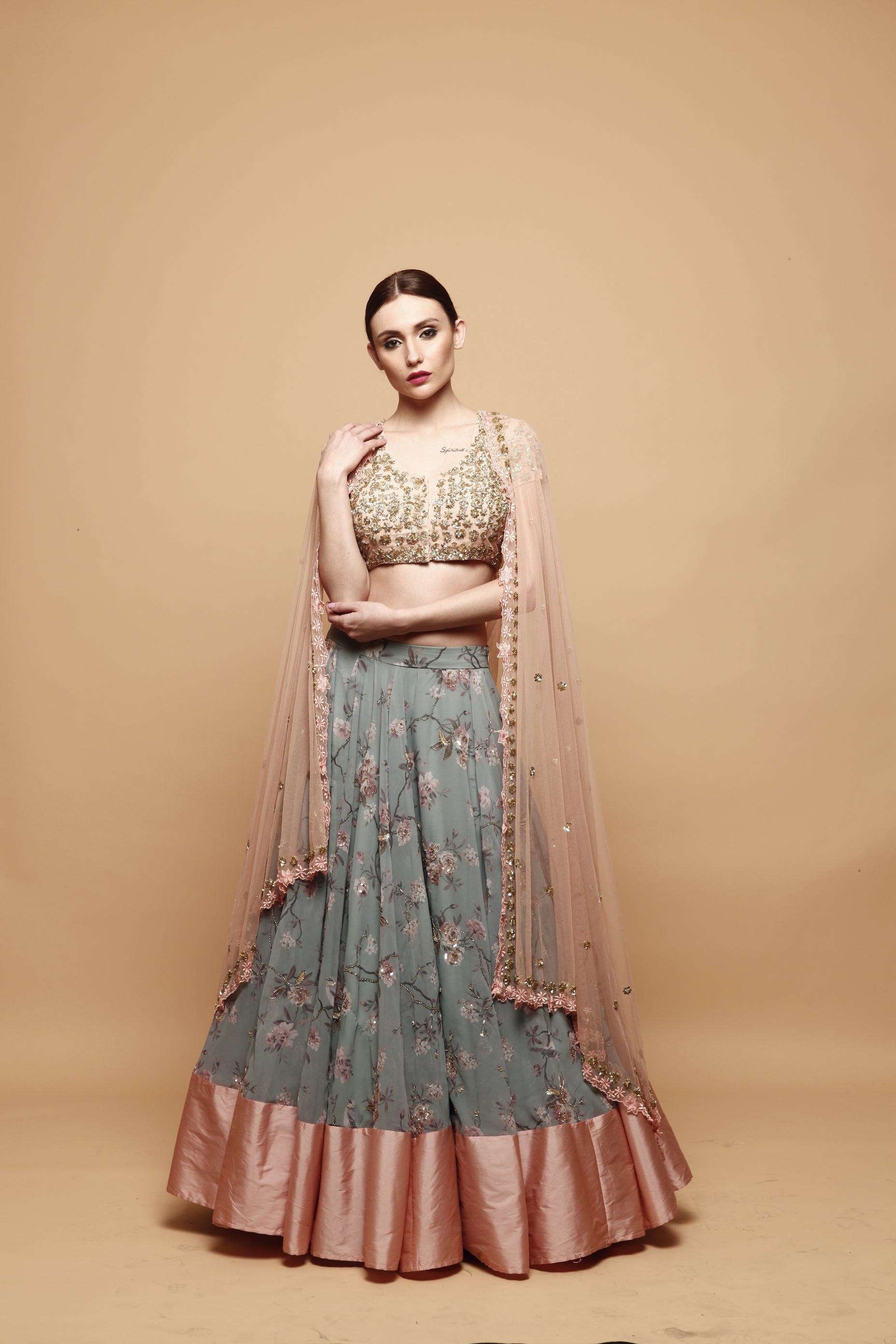 Featuring a BLUE FLORAL PRINT LEHENGA IN GEORJETTE.