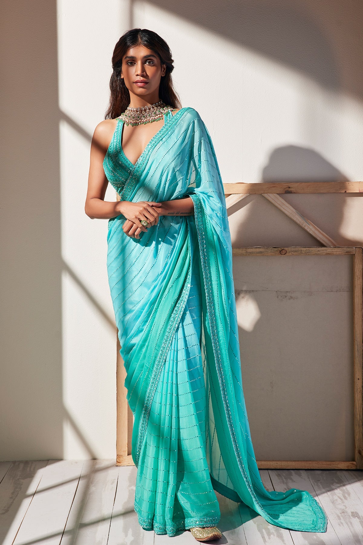 Georgette sequence embellished saree paired with a sequence and bead embellished bralette.