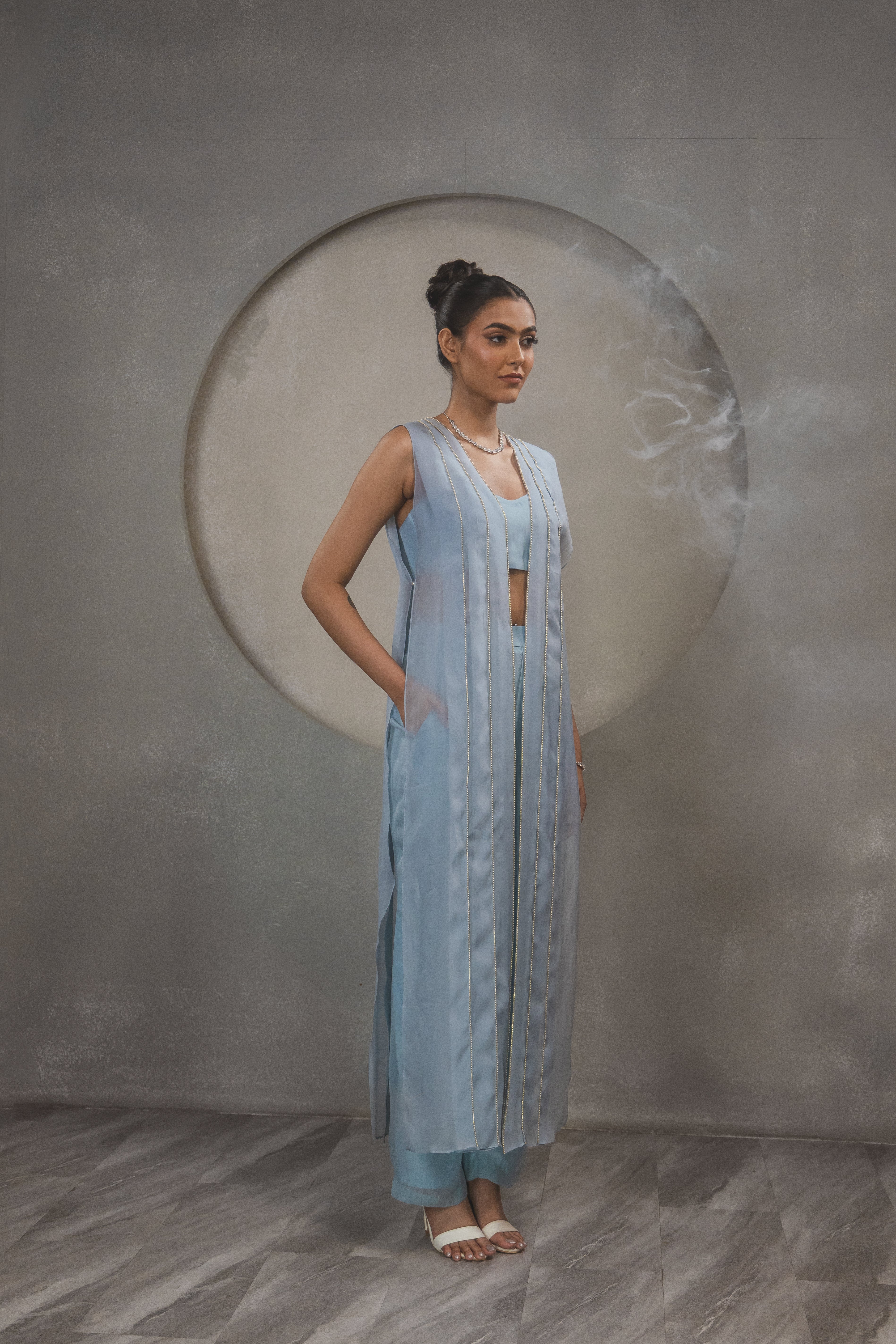 Power meets elegance in this Blue Open Jacket Set paired with matching pants�perfect for cocktail nights. Shop now at Paaro!