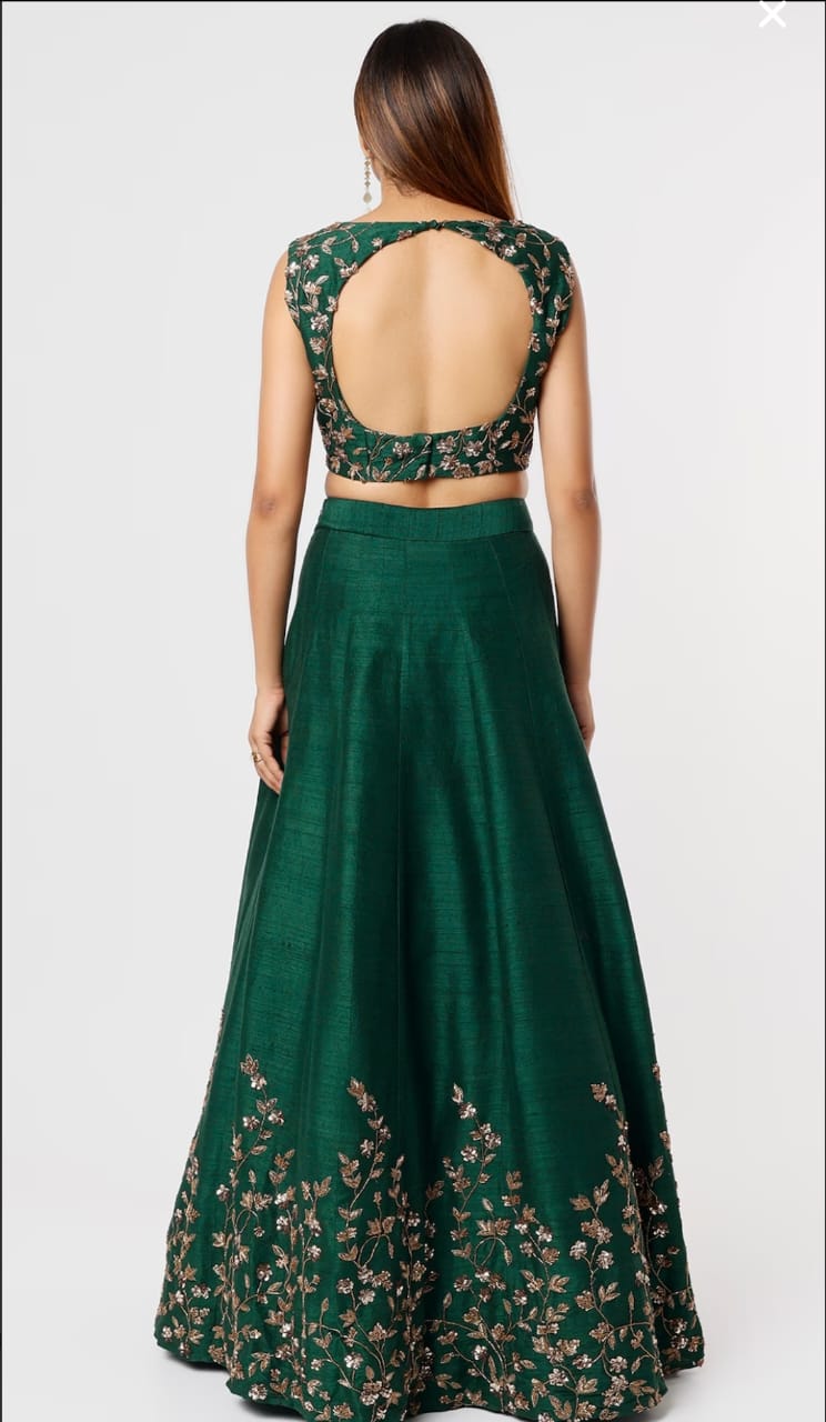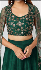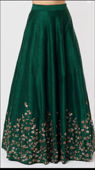 Bottle Green Silk & Net Sequins Embroidered Lehenga Set