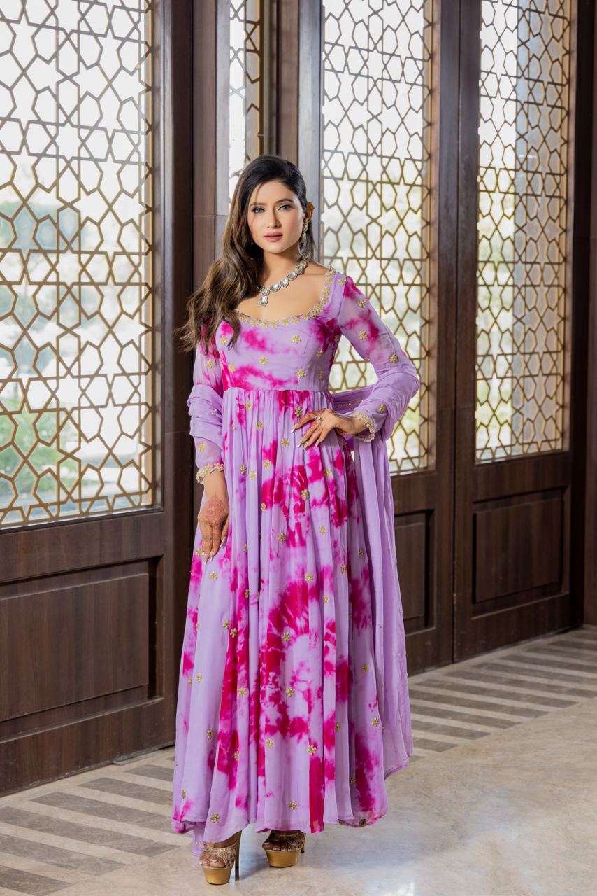 Bulbul -Mauve tie and dye hand embroidered anarkali set