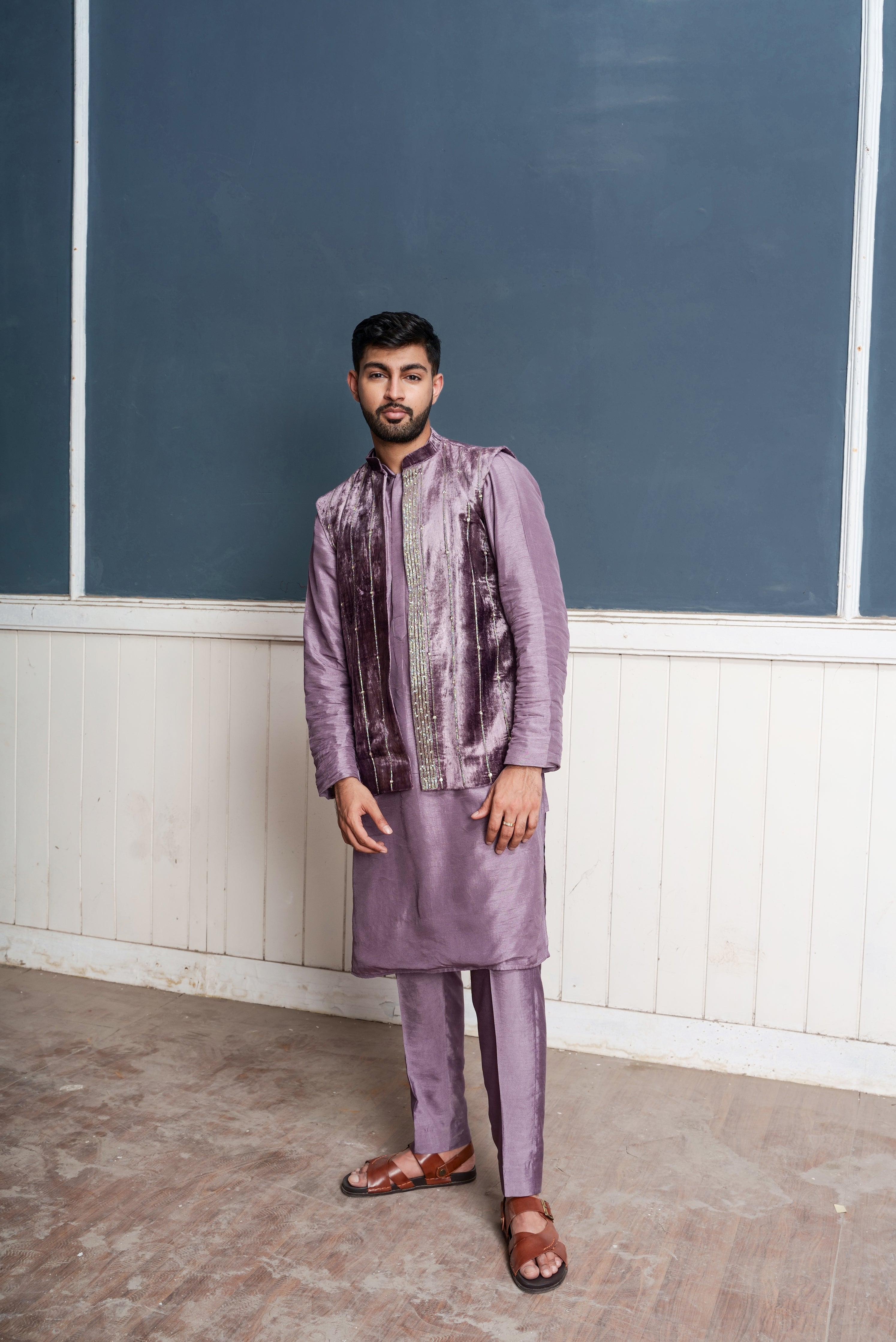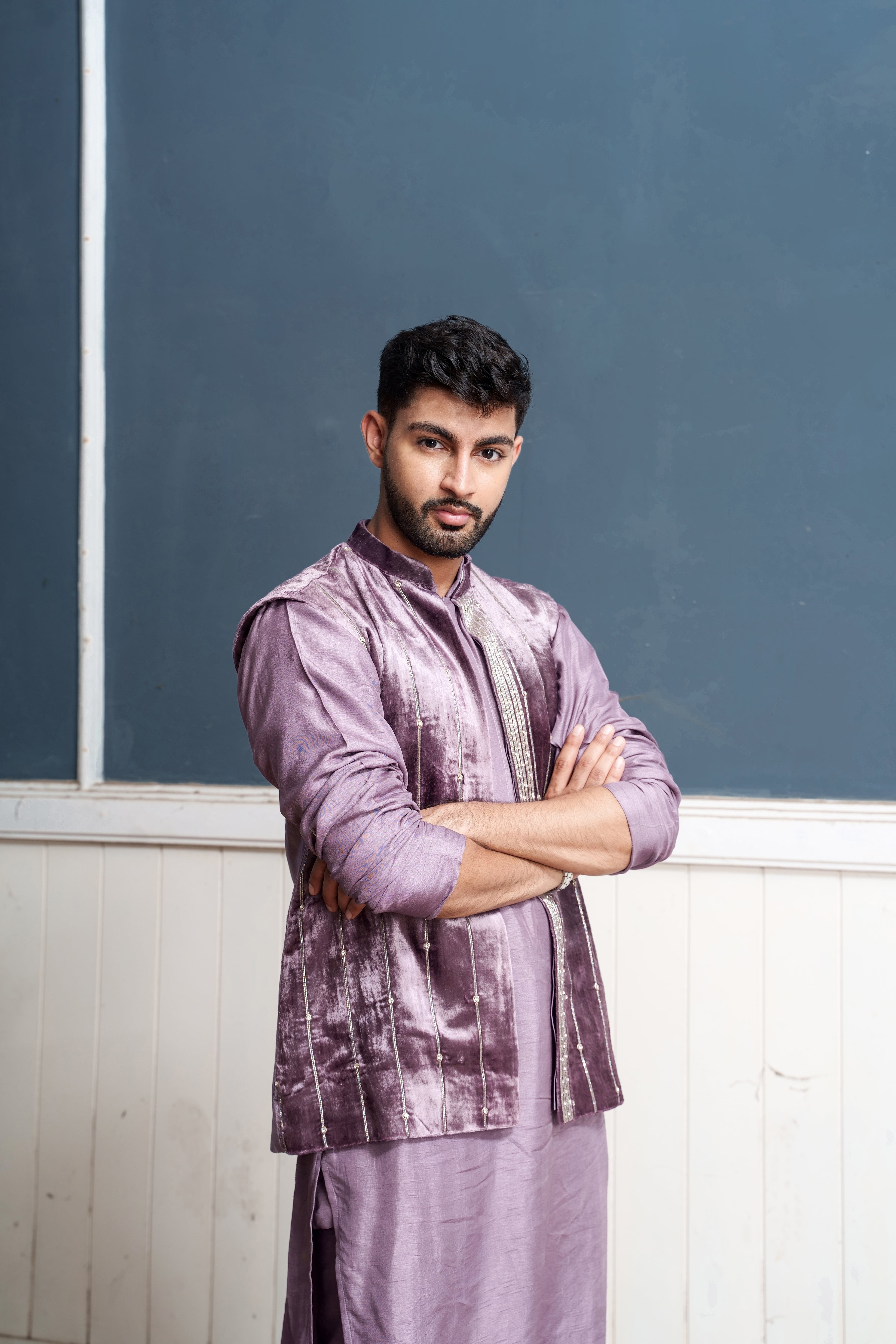 Caelum-Plum Ash Cutdana Embroidered Indo Western Kurtha Set