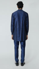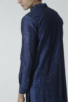 A Navy chanderi kurta adorned with sparkling rhinestones, paired with pants.