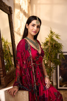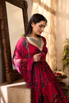 Featuring a Caramine Pink Floral Anarkali in Chiffon.