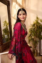 CARAMINE PINK CHIFFON FLORAL ANARKALI
