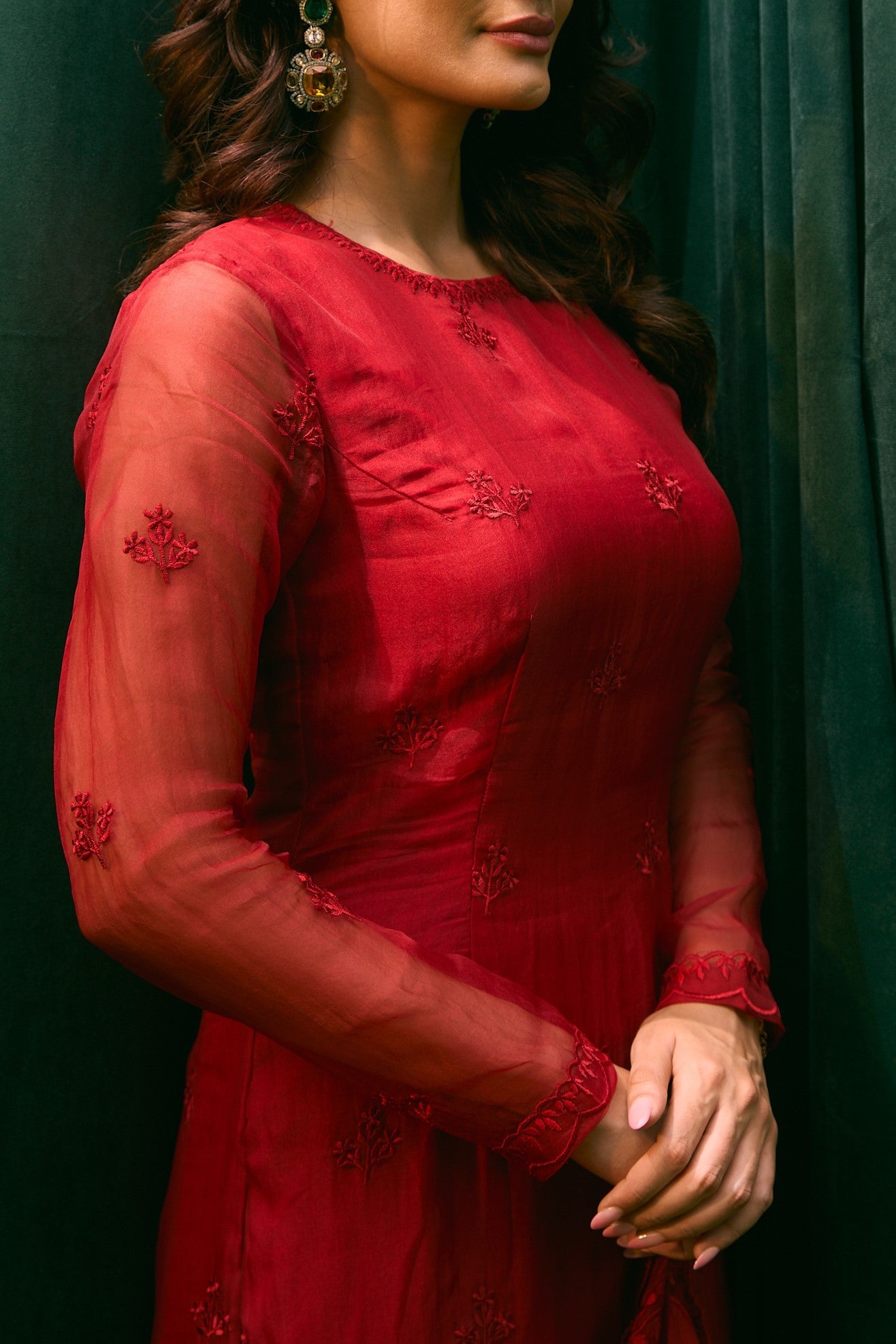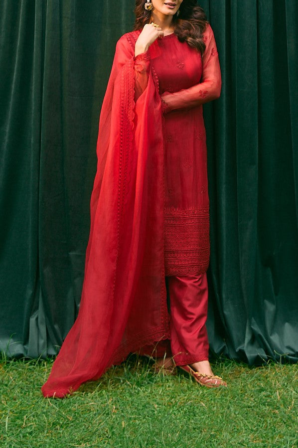Featuring Caramine Pink Organza Thread work Kurti and Sharara set in Organza Silk set.