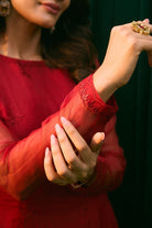 Caramine Pink Organza Thread Work Kurti And Sharara Set