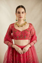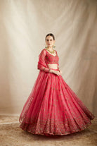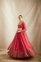 Carmine Pink Silk Organza Crepe Embroidered Lehenga