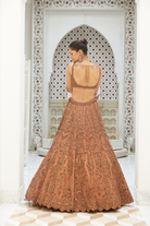 COPPER NET LEHENGA CHOLI SET WITH HEAD VEIL