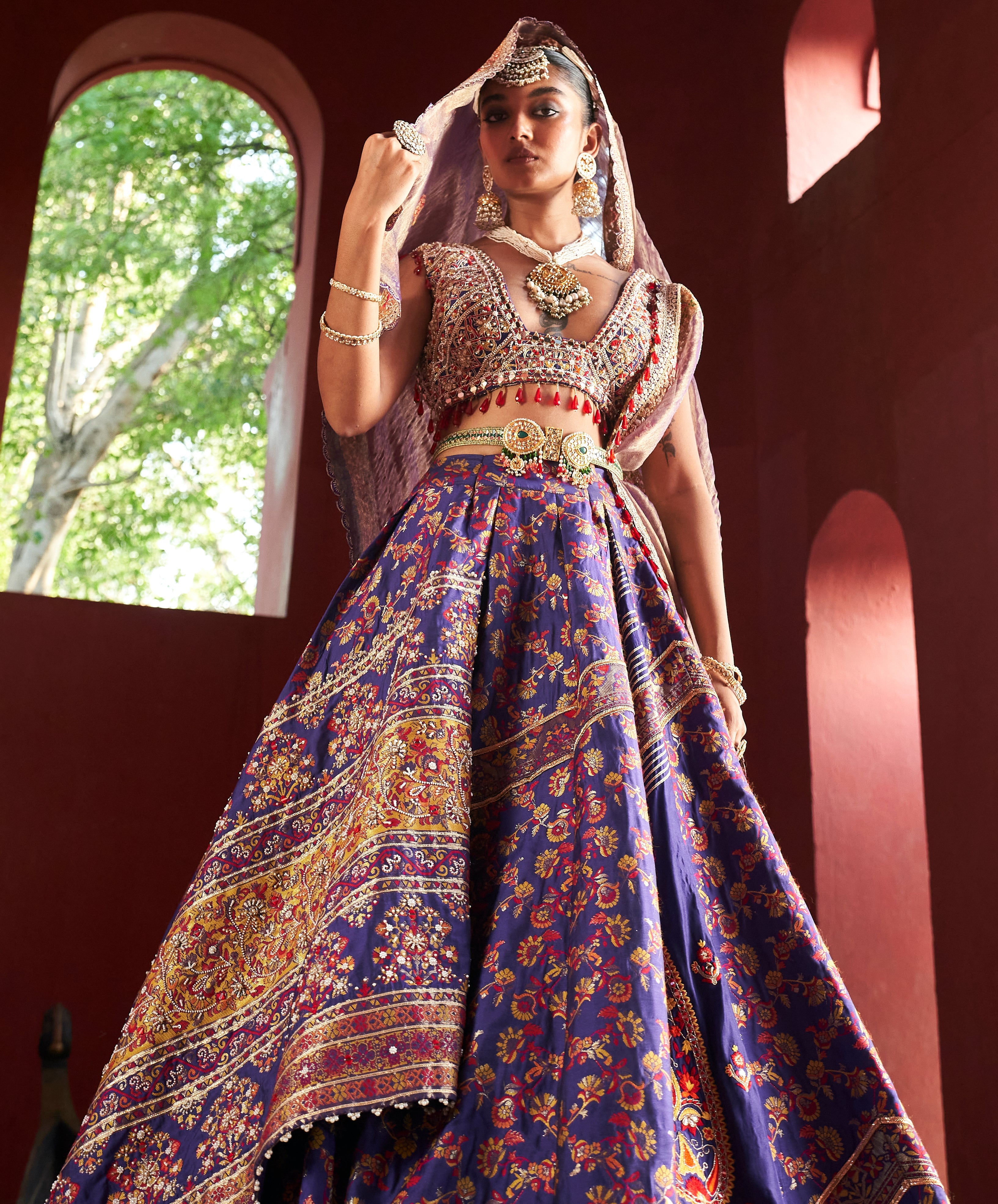 Set includes: Lehenga, Blouse, Dupatta and Belt