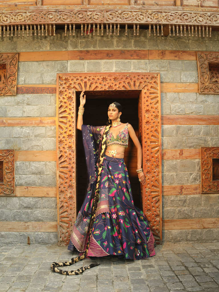Set includes: Lehenga, Blouse, Dupatta and Belt