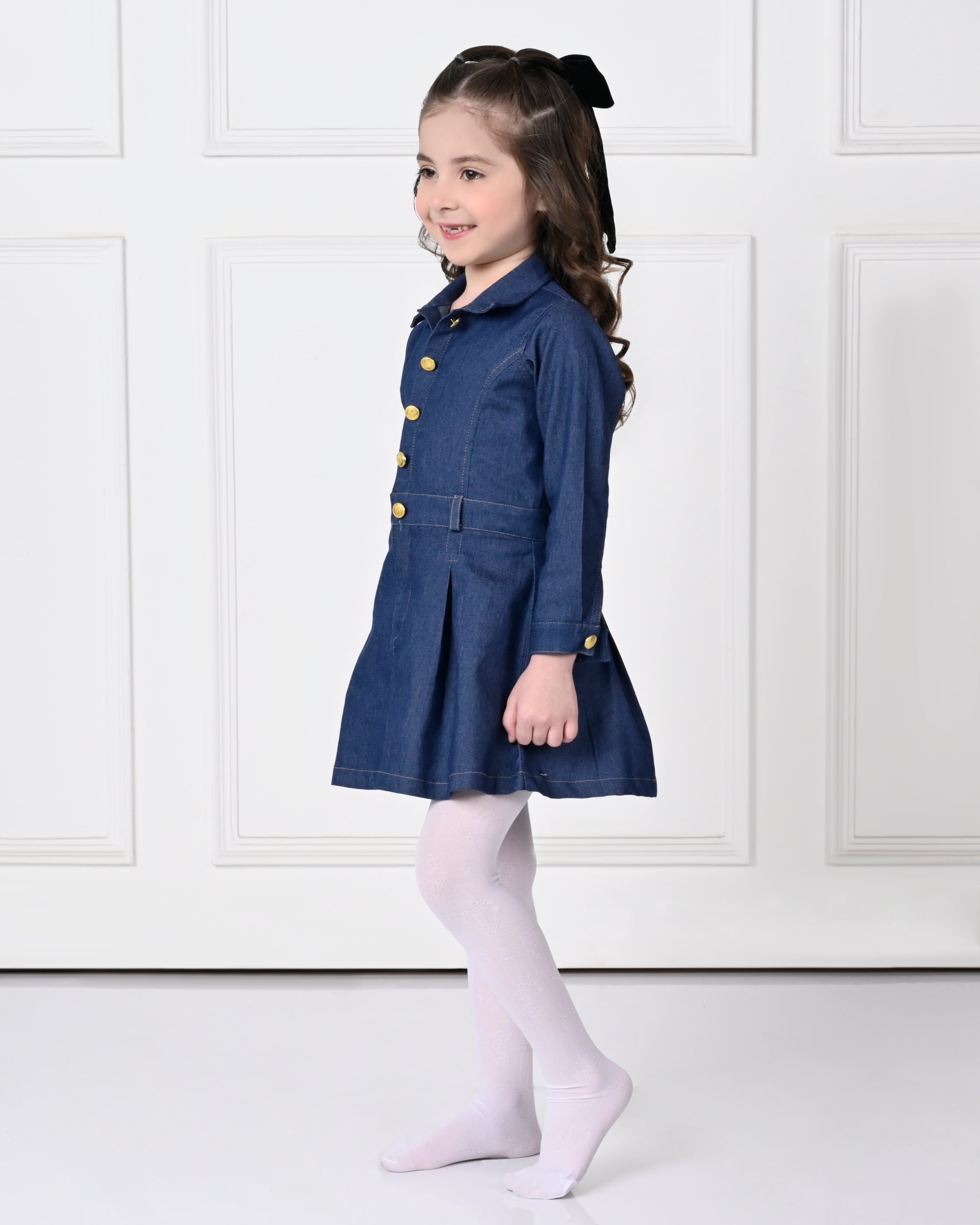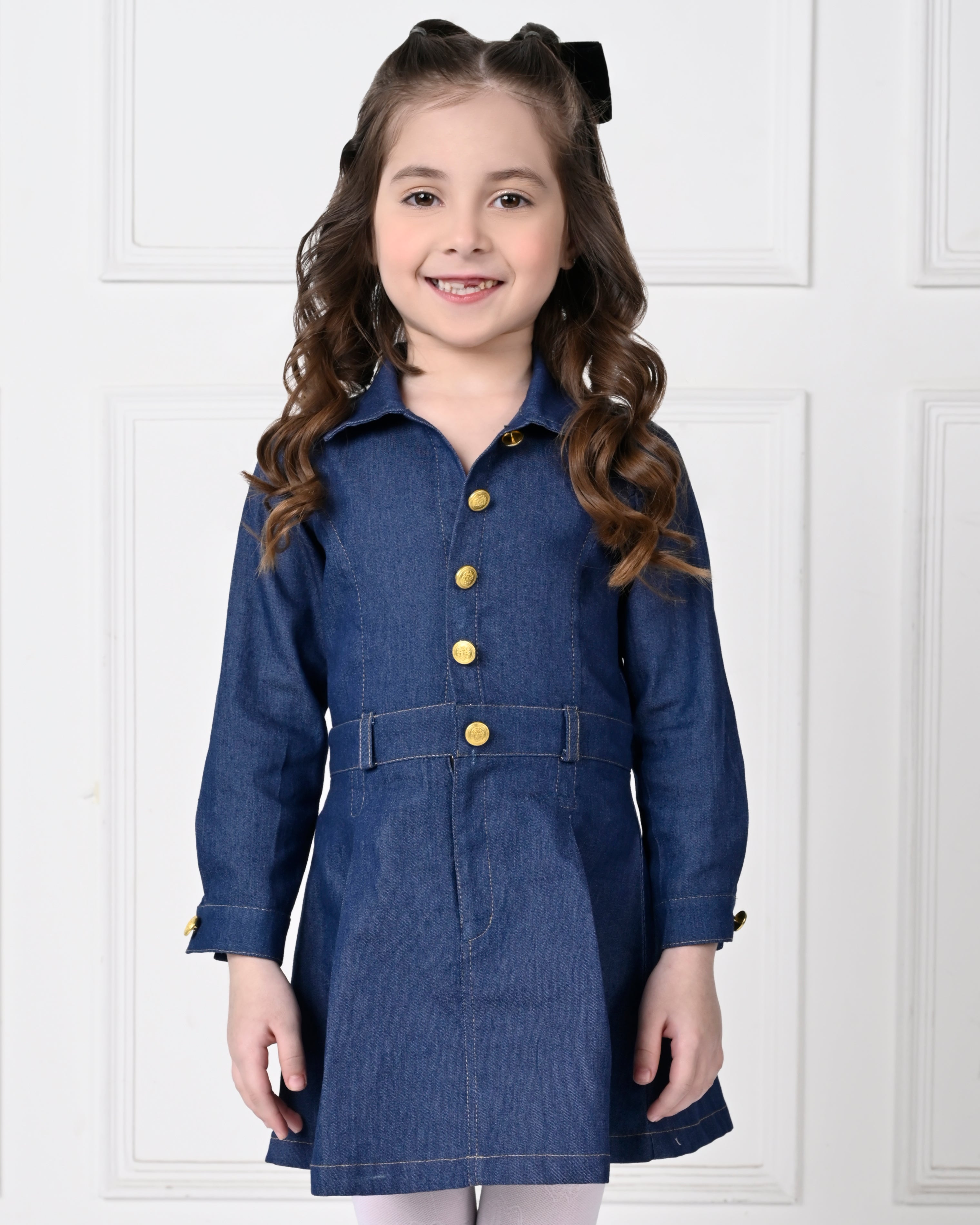 Stay stylish and comfortable in our Dark Blue Full Sleeve Denim Dress. Made with high-quality denim, this dress features full sleeves for added coverage and a dark blue color for a sleek, modern look. Elevate your wardrobe with this versatile and durable dress.