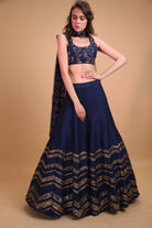Dark Blue Geometrical Zari Lehenga