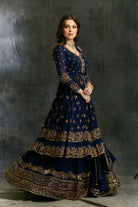 Featuring a DARK BLUE GOLD JACKET WITH BORDER SKIRT IN GEORGETTE.