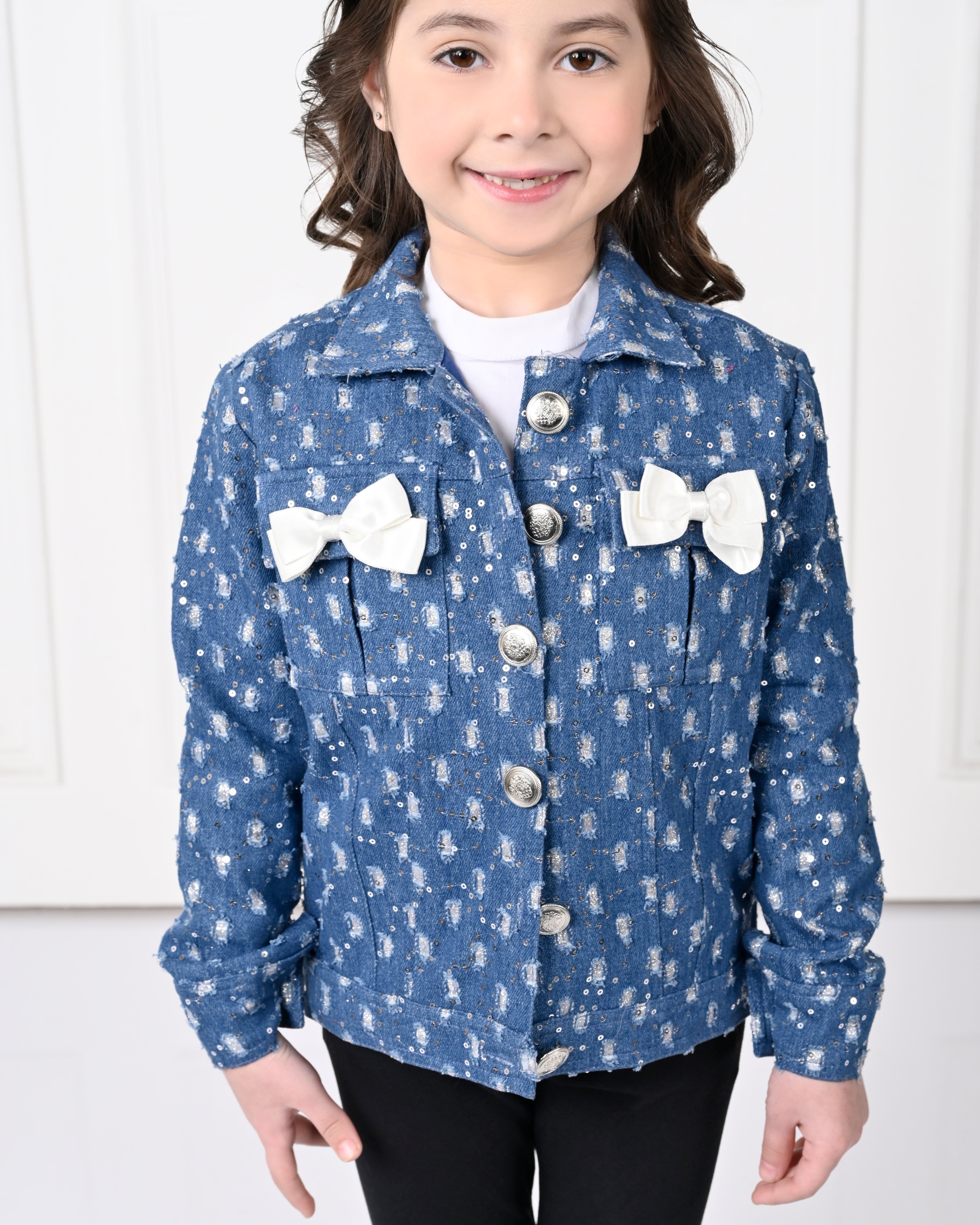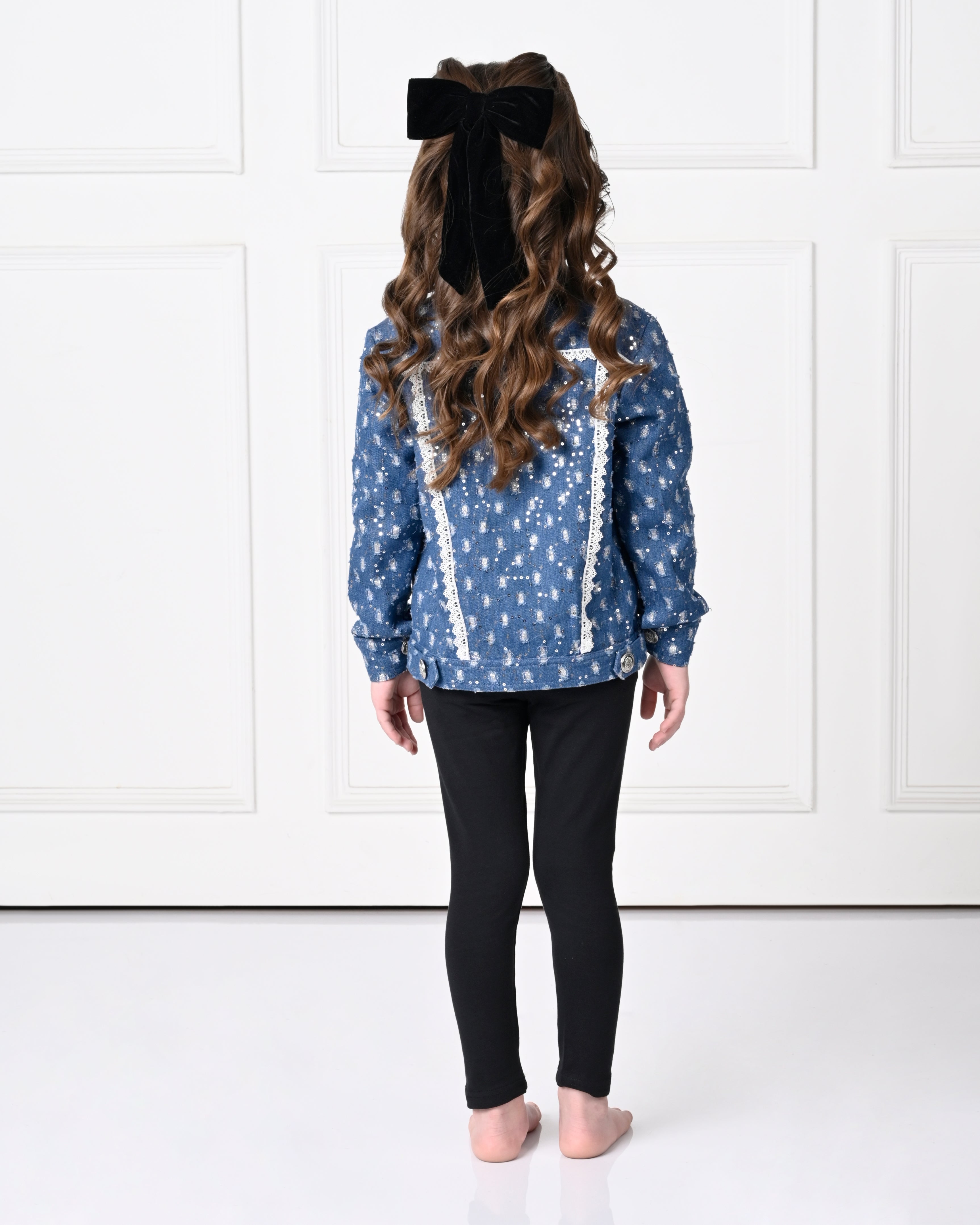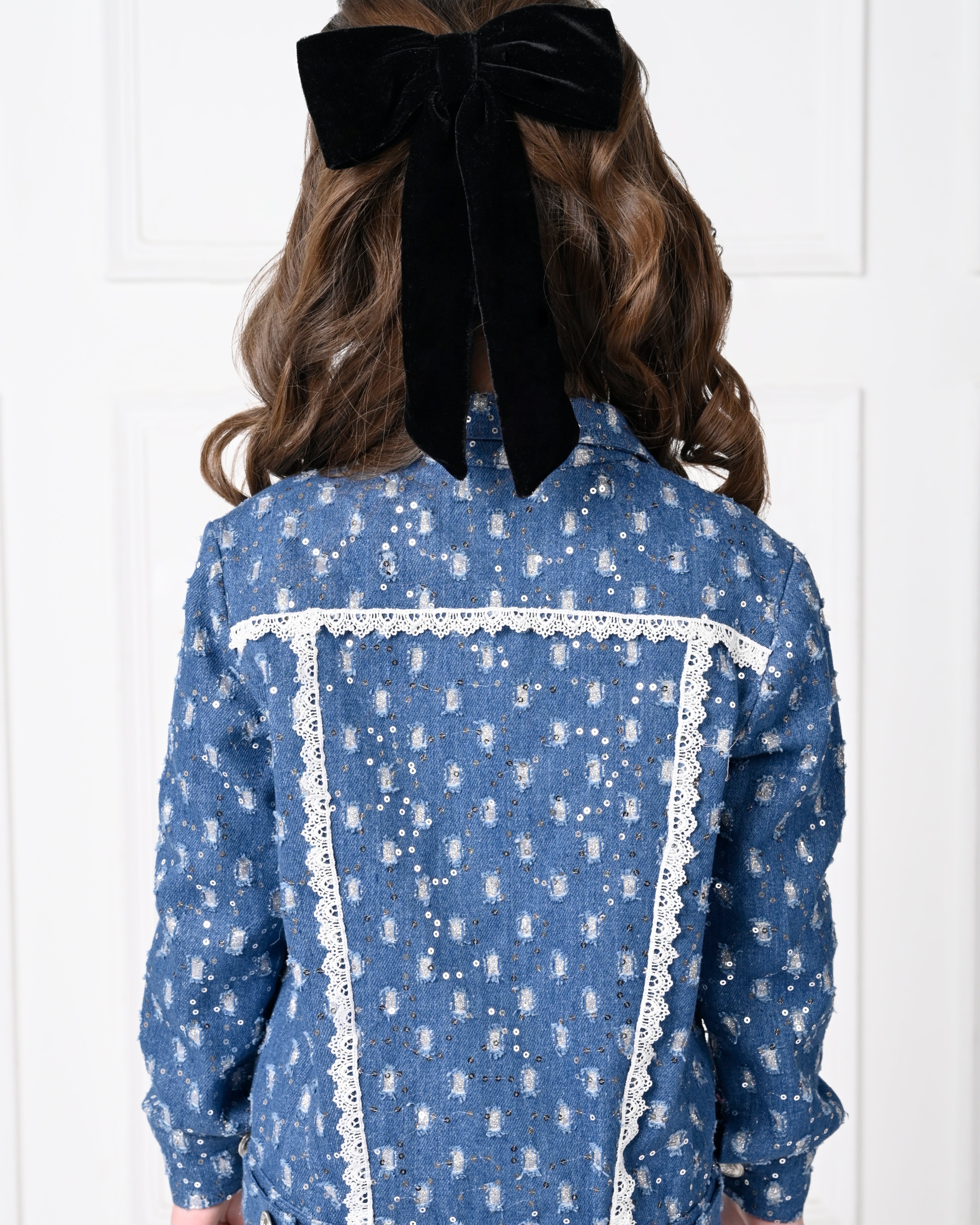 Dark Blue Over Size Full Sleeve Lace with Bow Denim Jacket