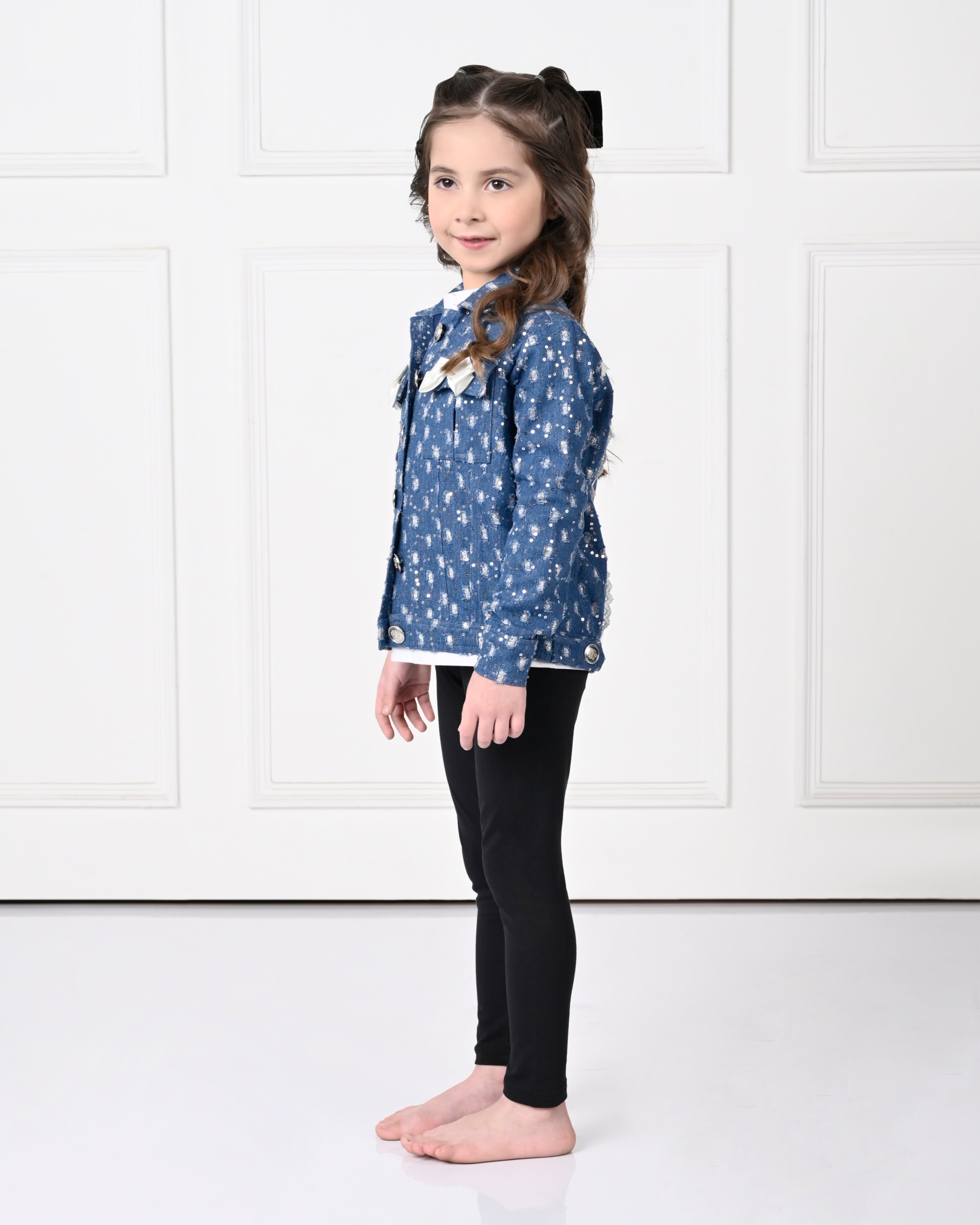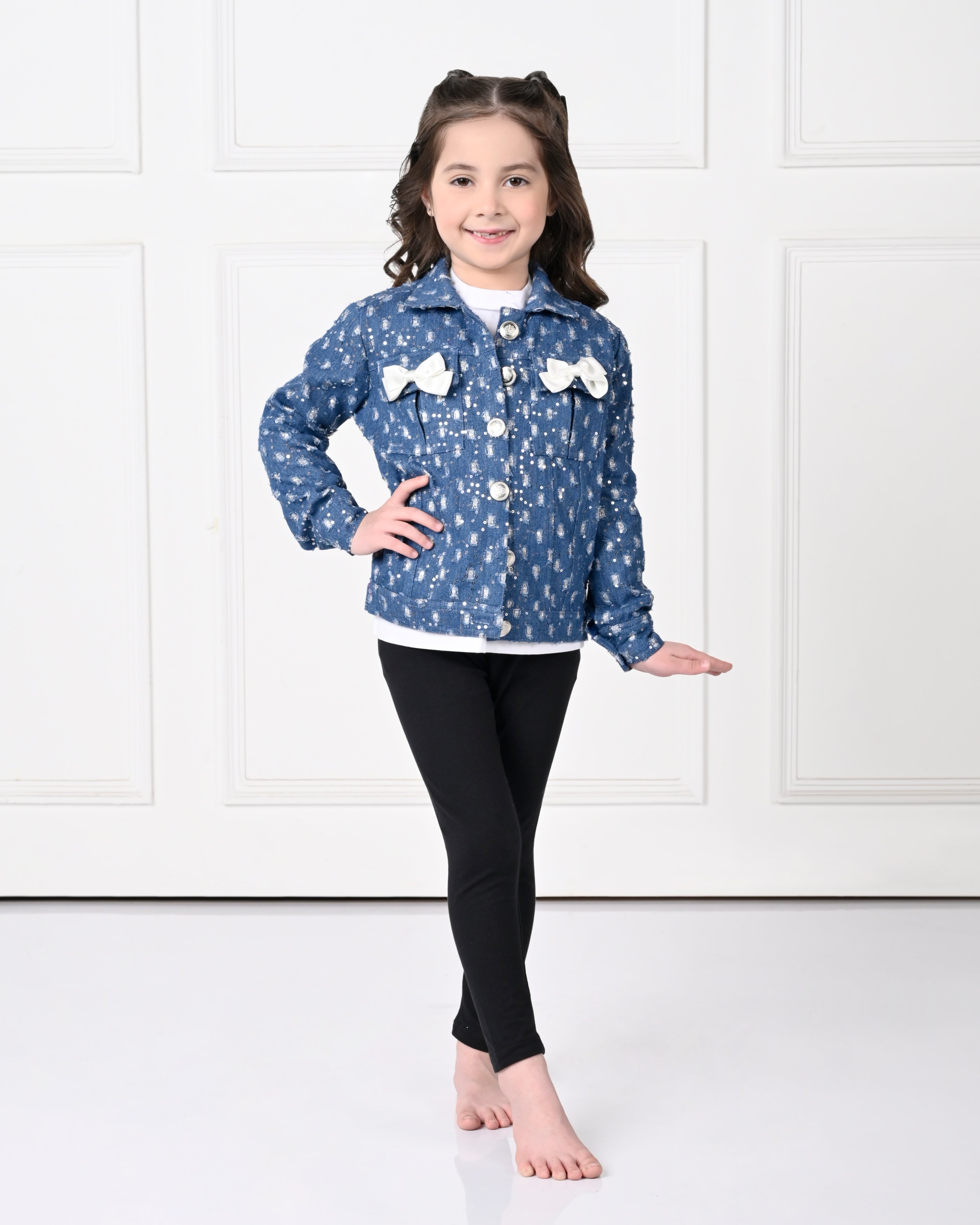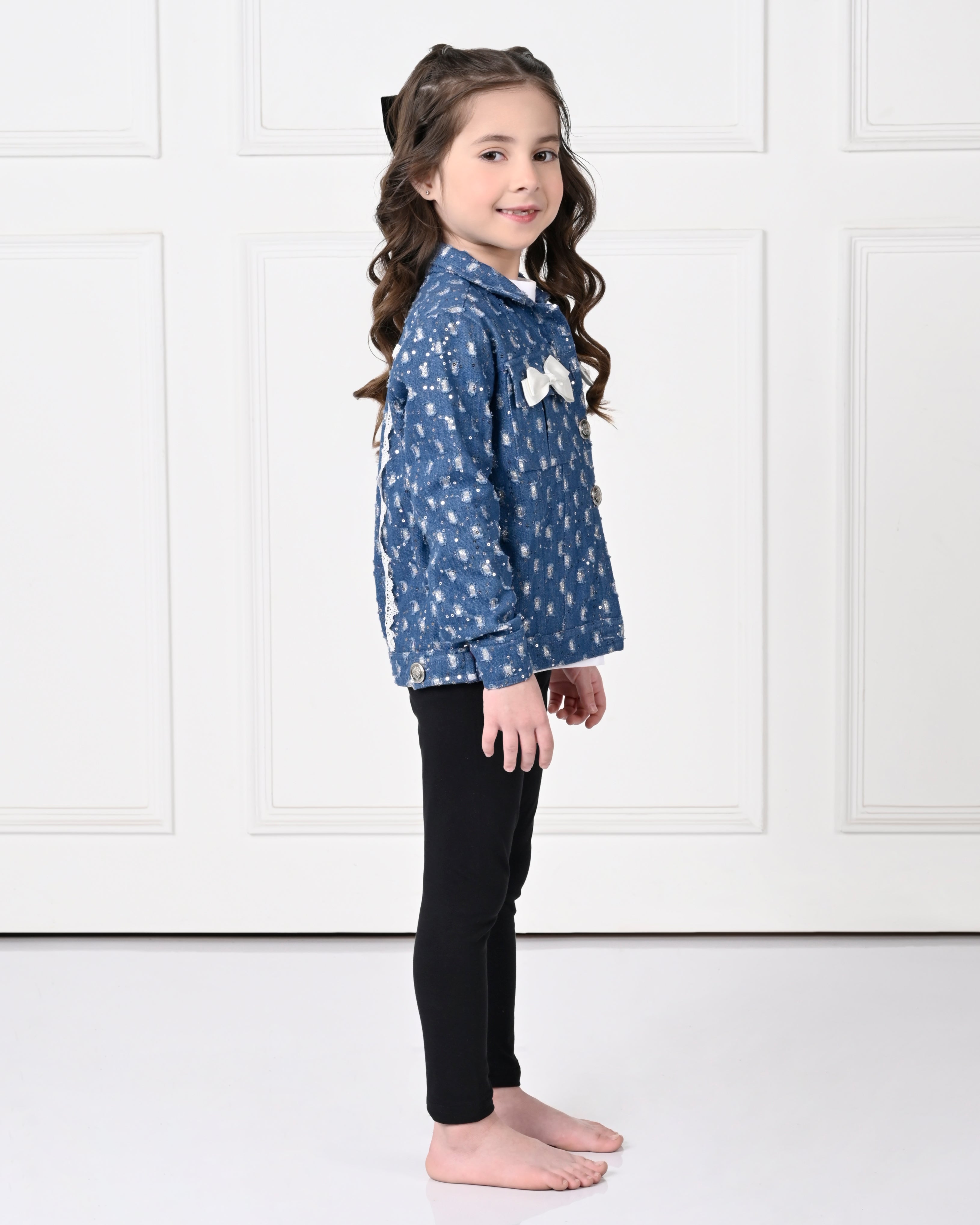 Dark Blue Over Size Full Sleeve Lace with Bow Denim Jacket