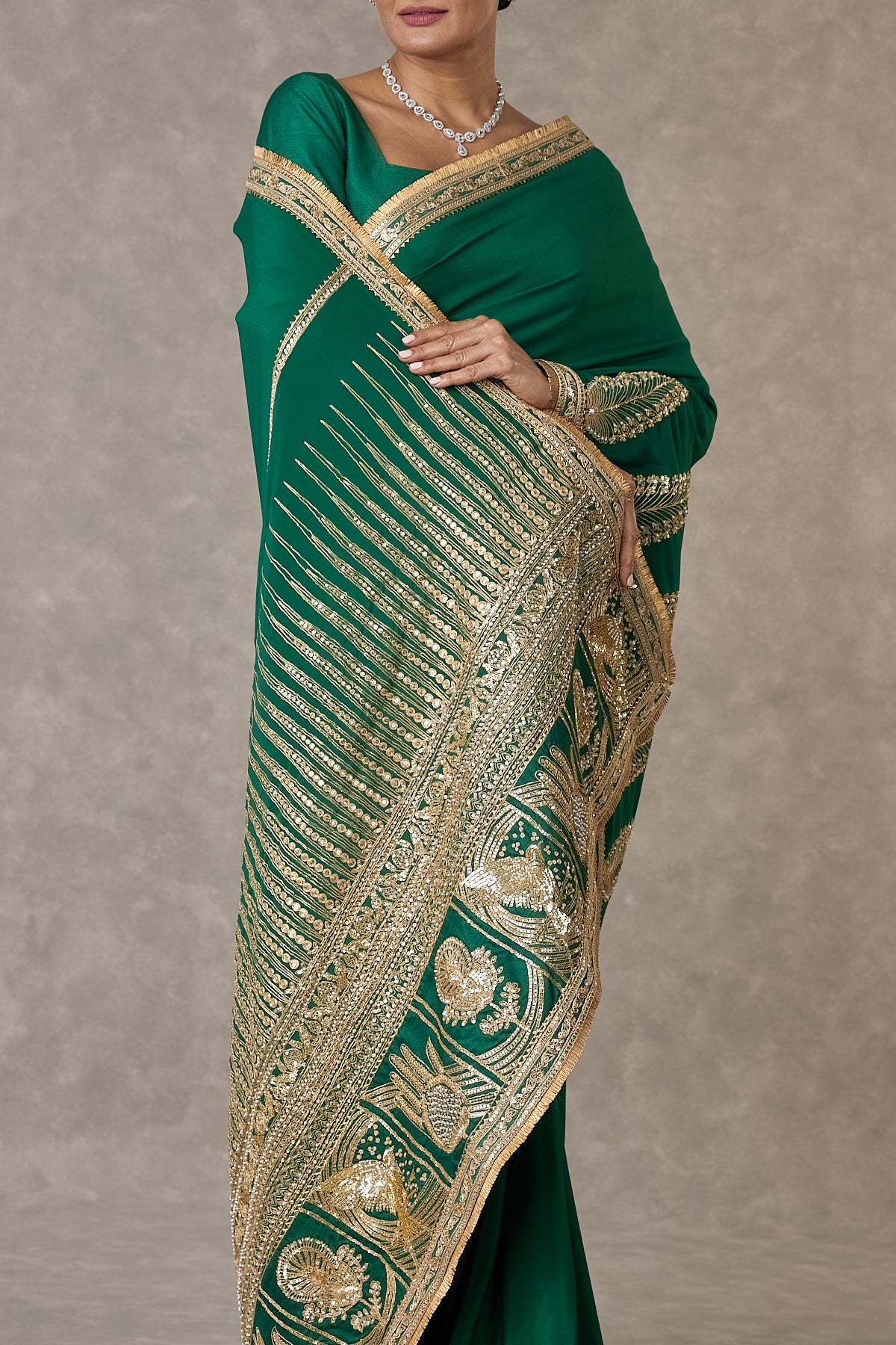 Dark green Son-Patti Saree