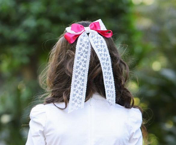 Dark Pink bow with white lace hair clip