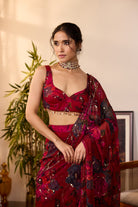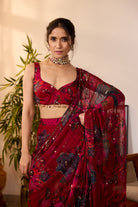 Featuring a Deep Red Chiffon Floral Saree in Chiffon.