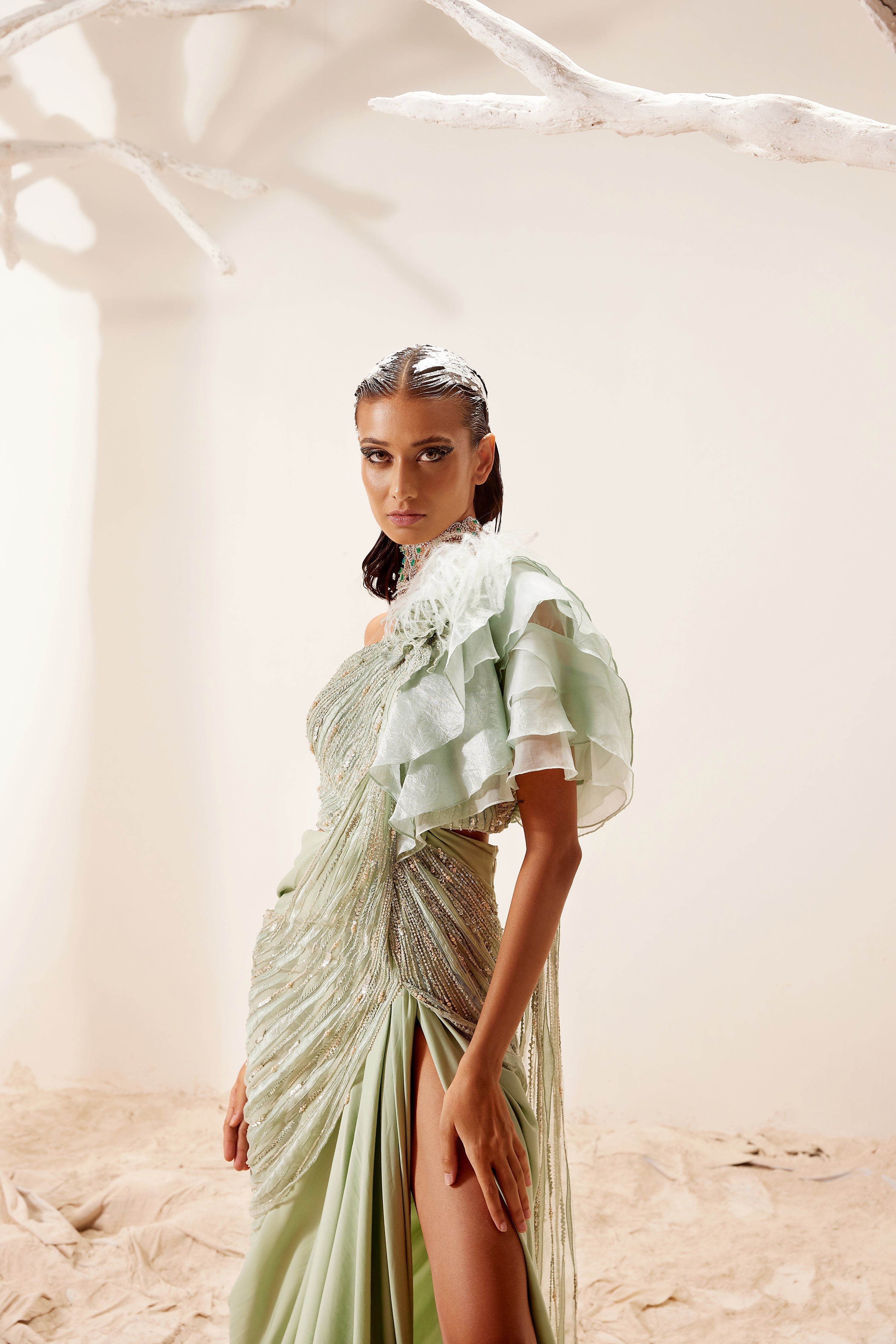 Fabric used -CREPE SATIN , BAMBER SILK,ORGANZA