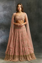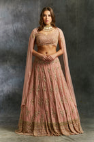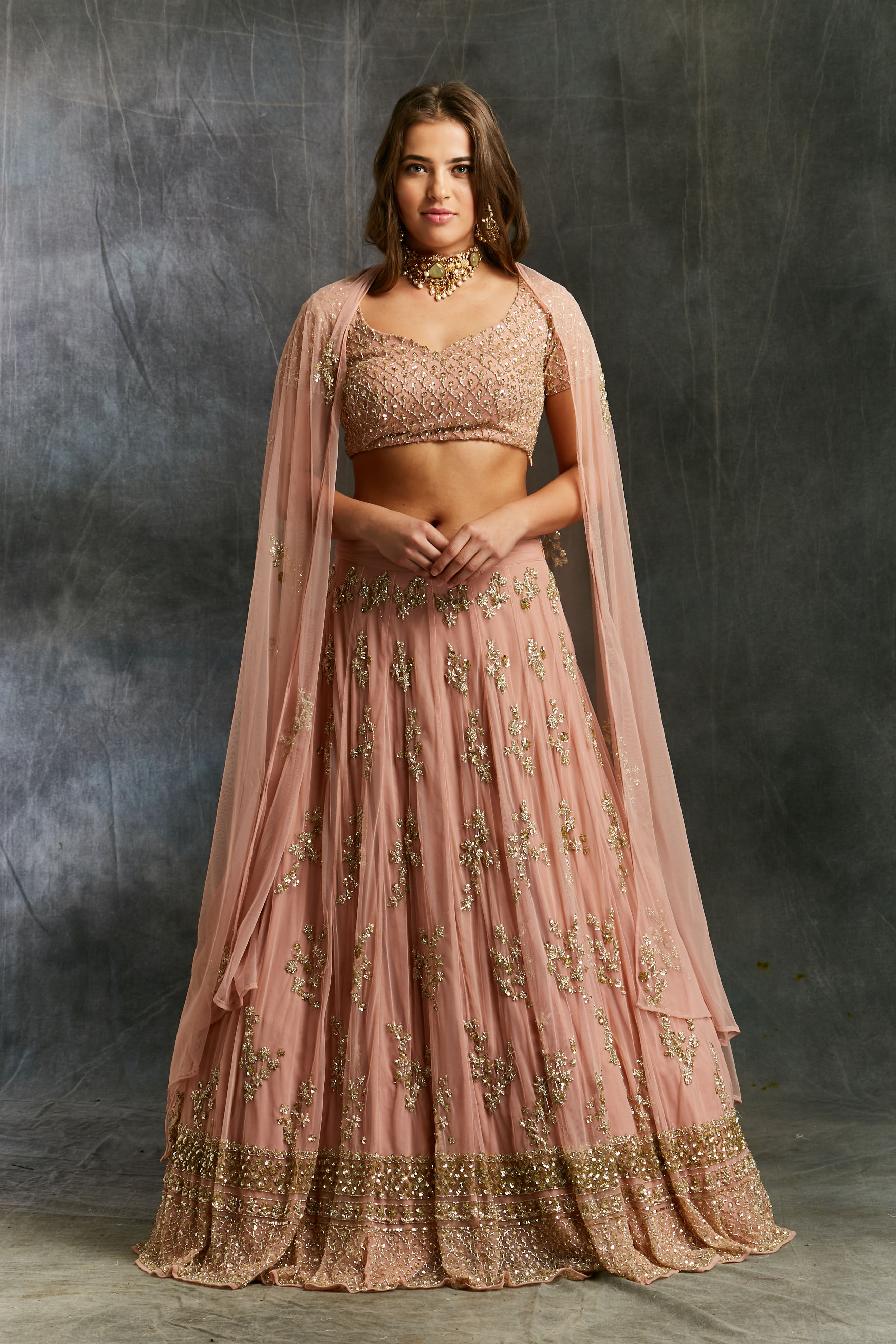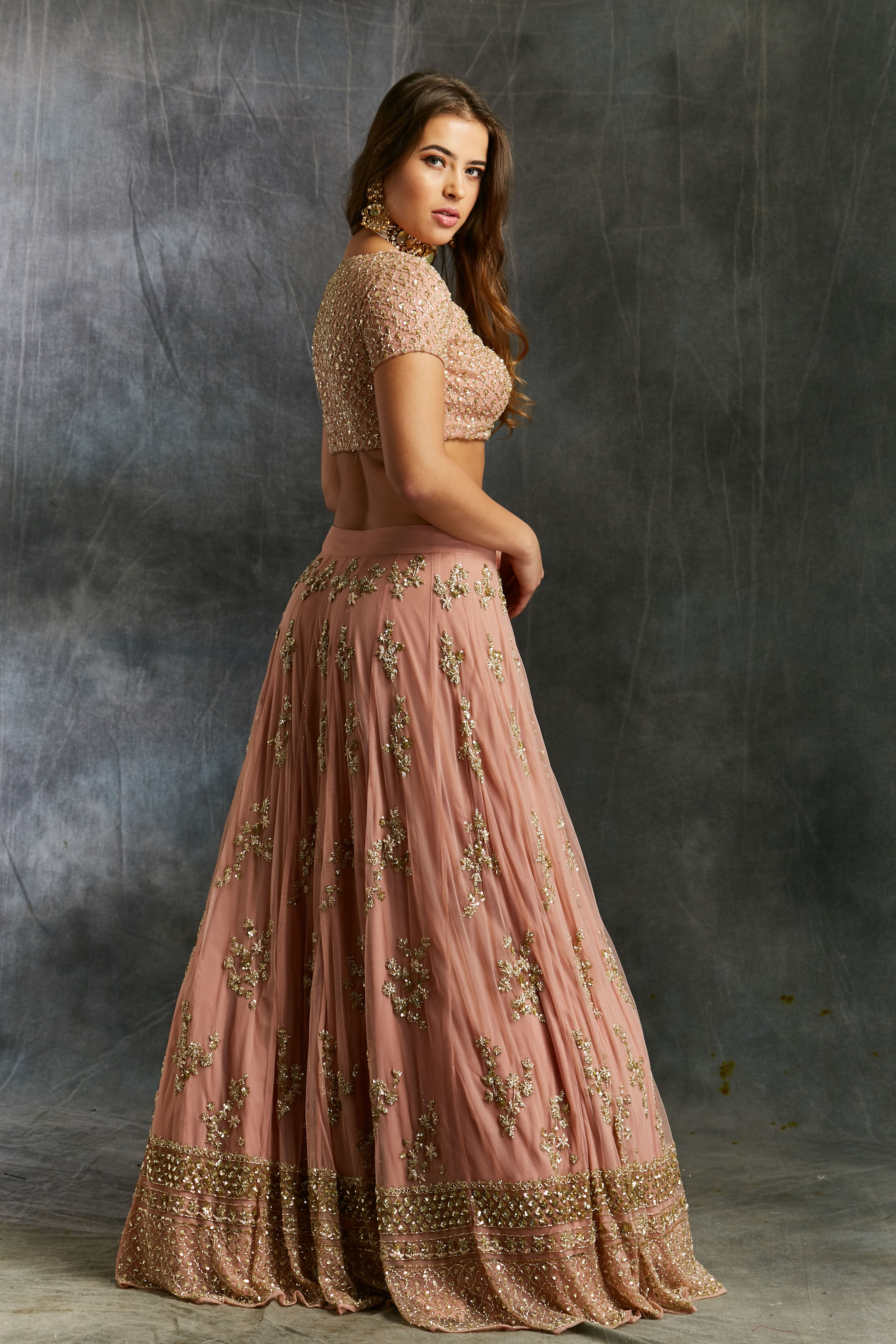 Featuring a Dusty Pink With Gold Work Lehenga Set In Net.