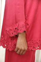 It consists of Bemberg pure satin kurta distinguished by it delicate cutwork embroidery with handwork. It is paired with organza cutwork dupatta and complimentary salwaar.