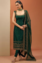 This consists of kurta with handwork on its neckline and hemline. It is paired with churidaar and dupatta