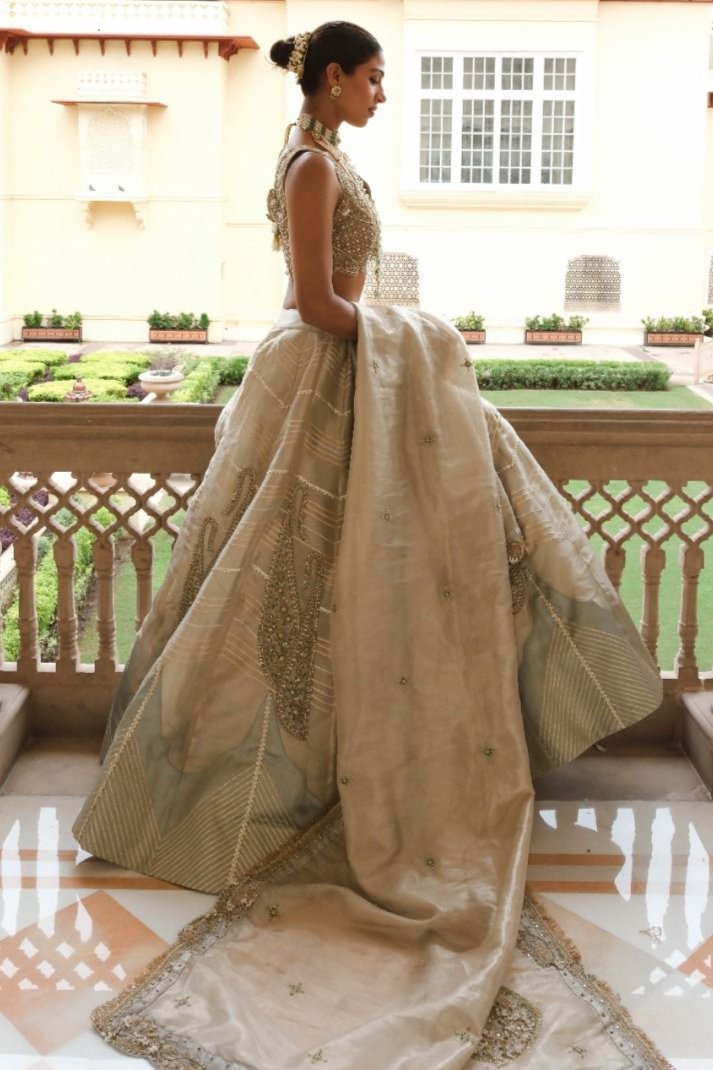 Geena Singh in our Pearl gold silk zari tissue lehnga set