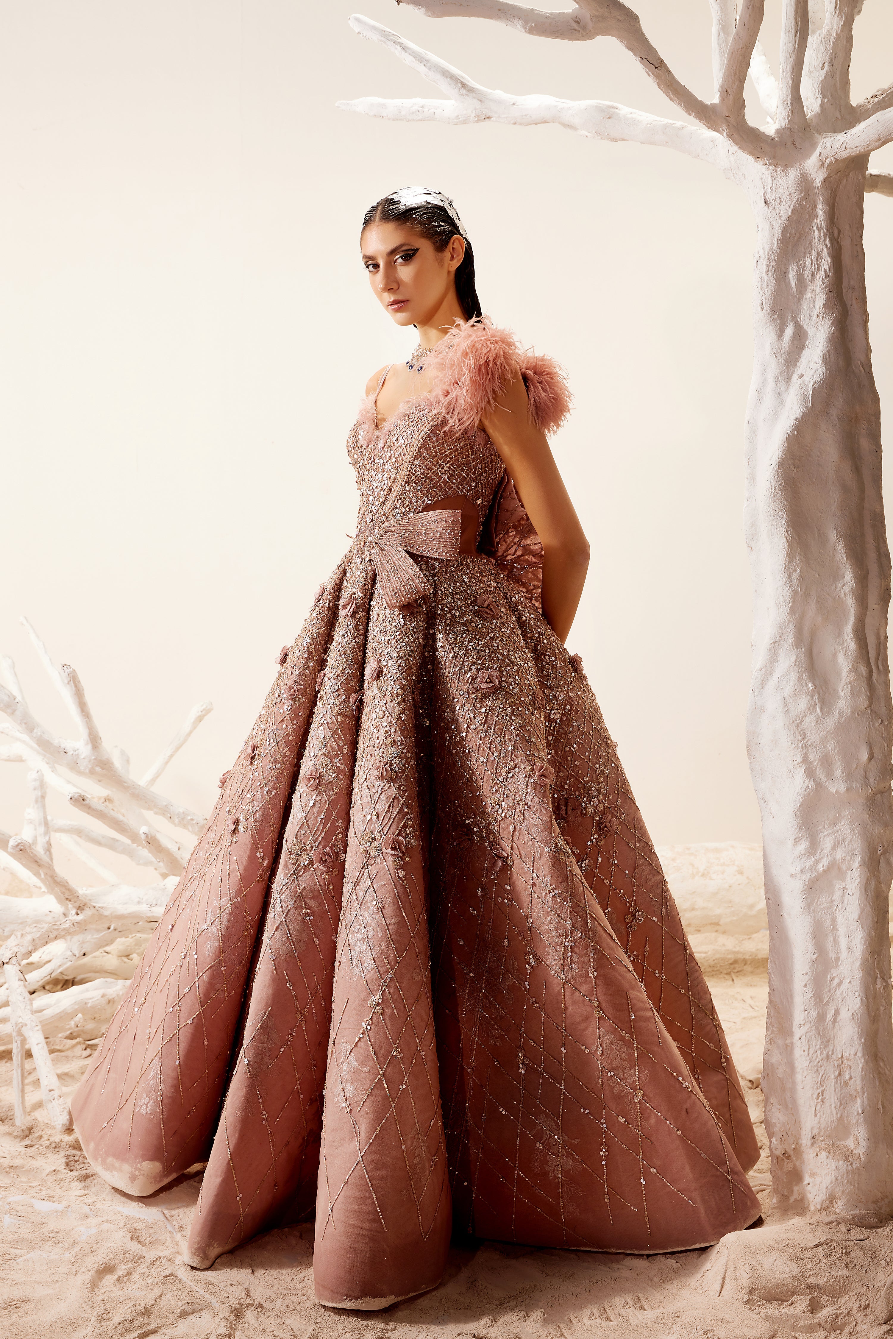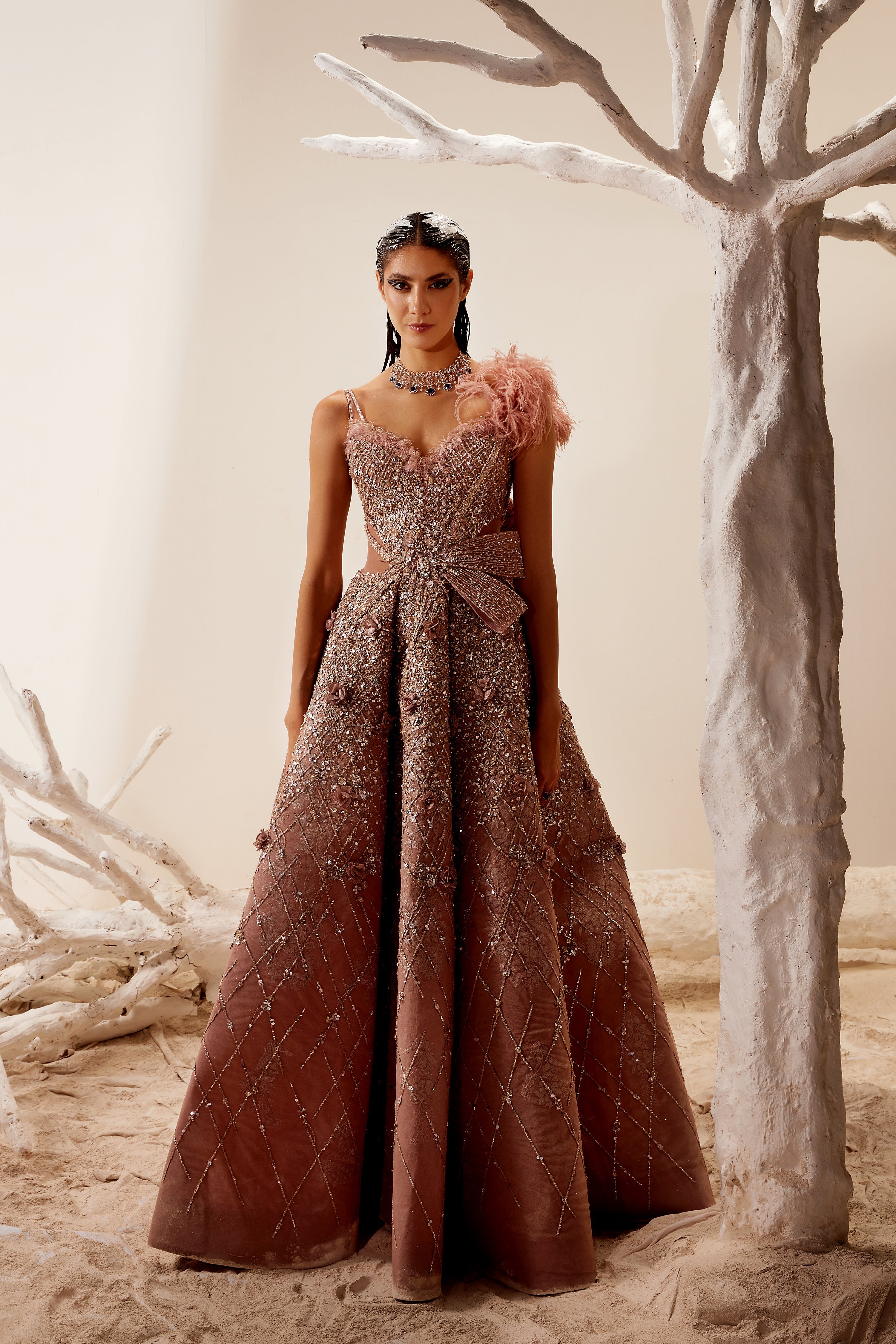 Custom made items may take up to 7-8 weeks for delivery depending on the designer, seasonality and customizations. Some items may also take upto 12 weeks so please ensure your event timelines accordingly.