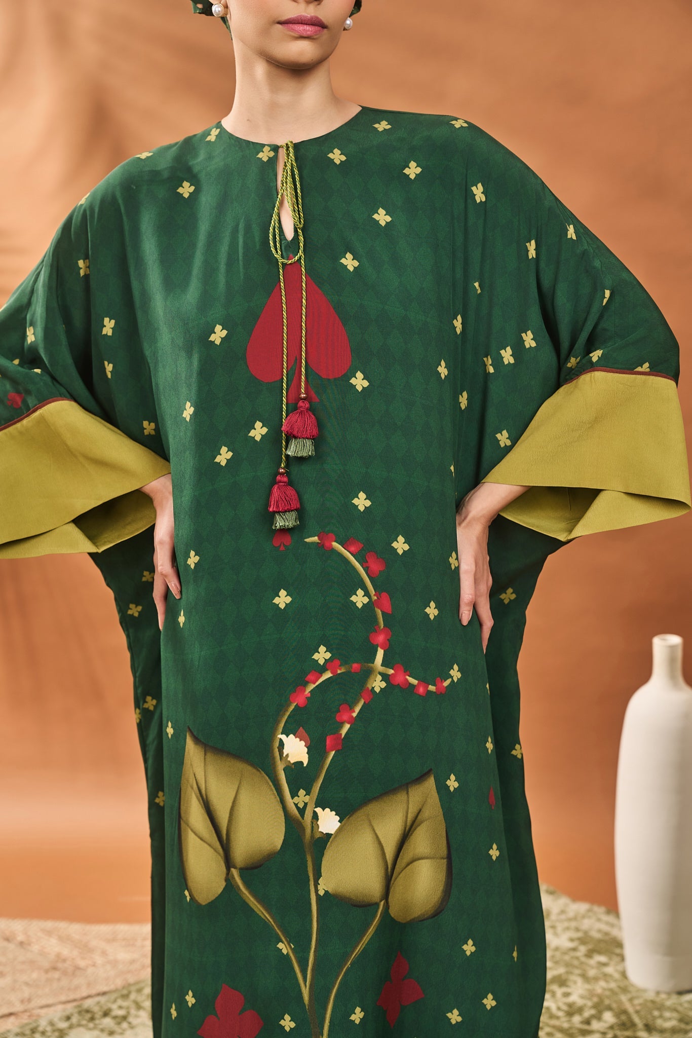 Green Clover Checks Kaftan
