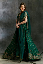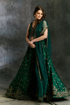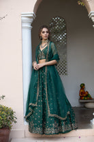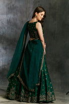 Featuring a GREEN EMERALD LEHENGA WITH ORGANZA DUPATTA SET IN RAW SILK.
