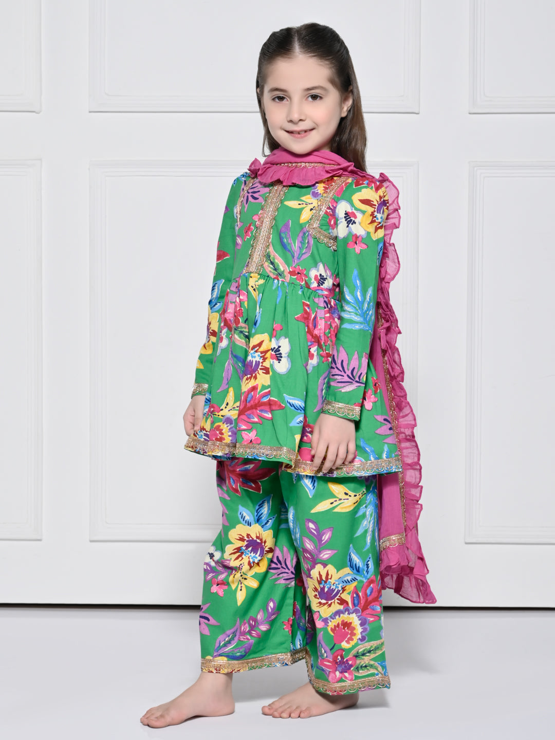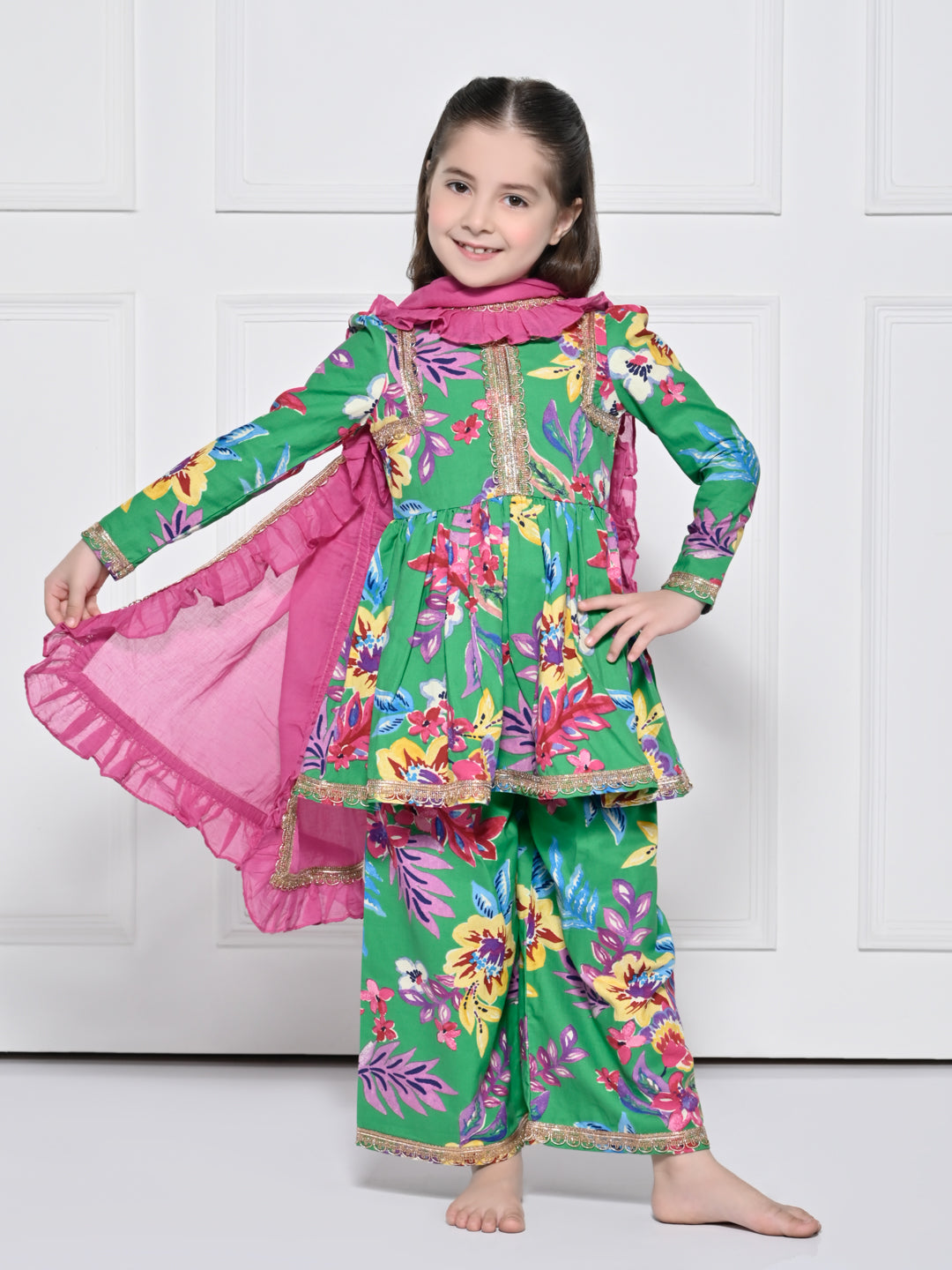 ● Components – Set of 3 ( 1 Kurta, 1 Sharara & 1 Duppatta)