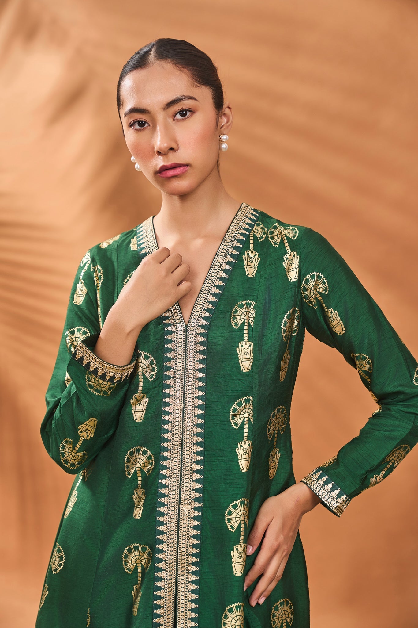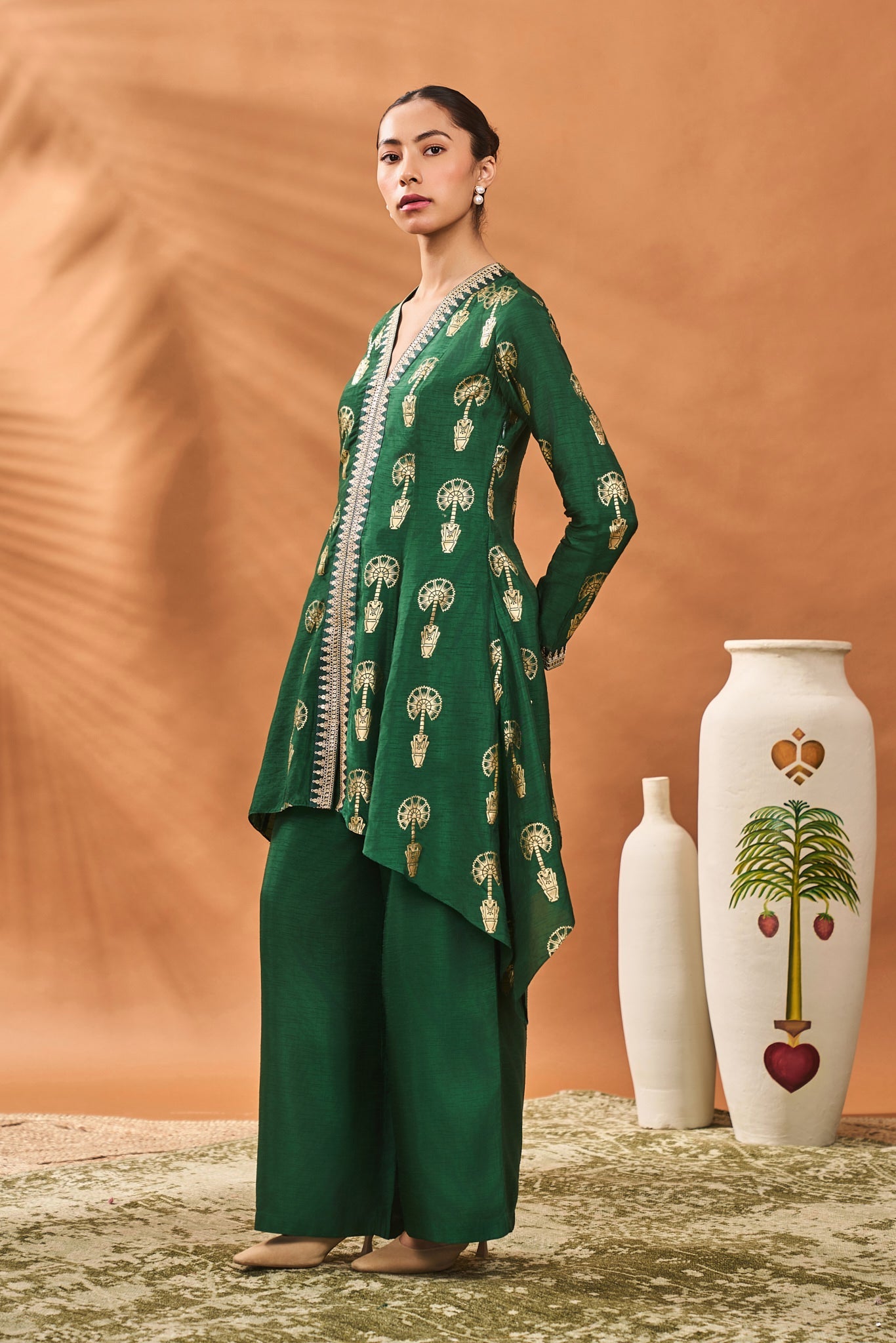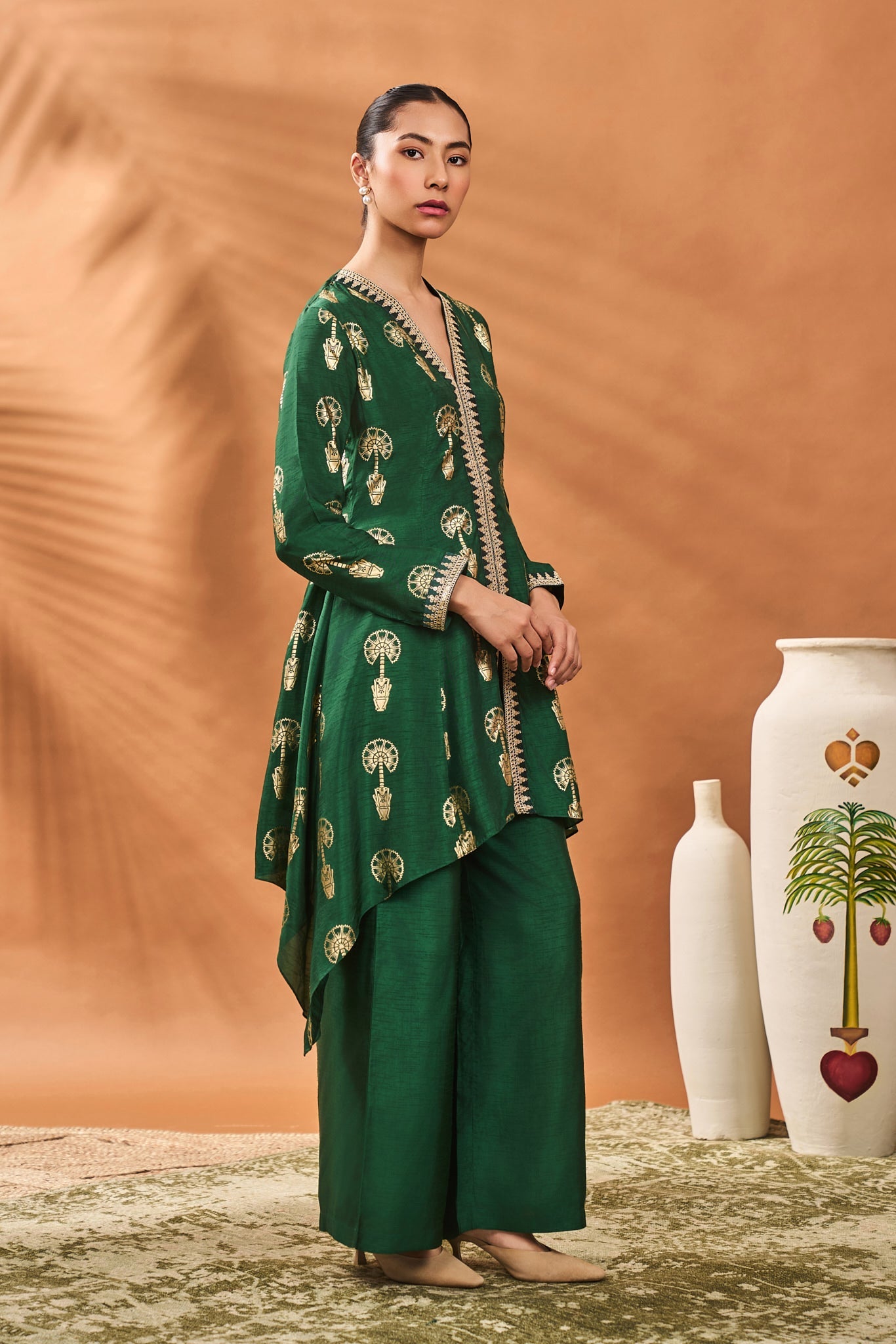 Green Traveller'S Palm Tunic Set